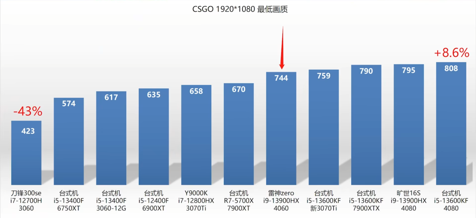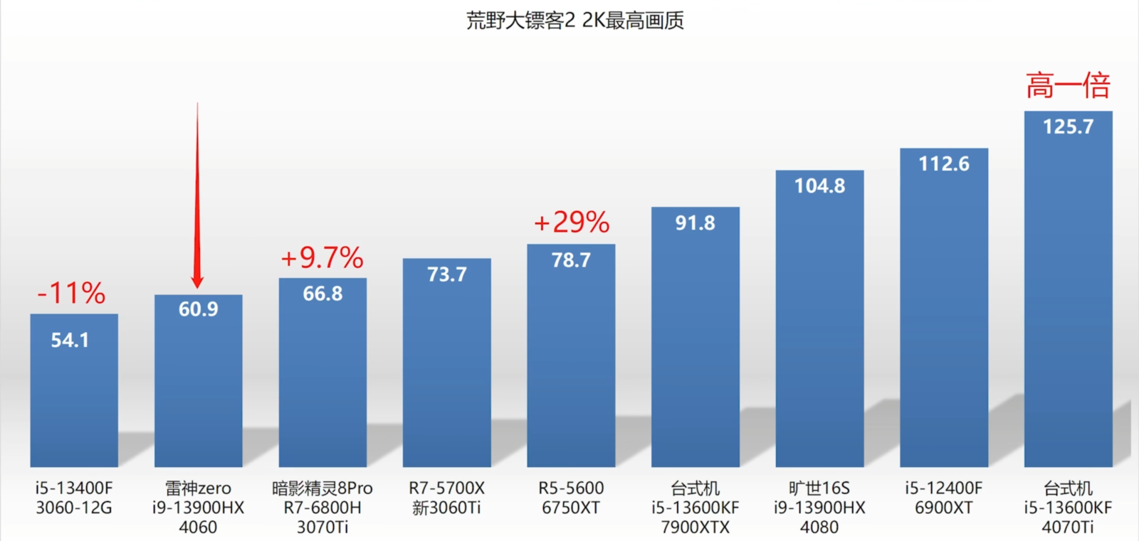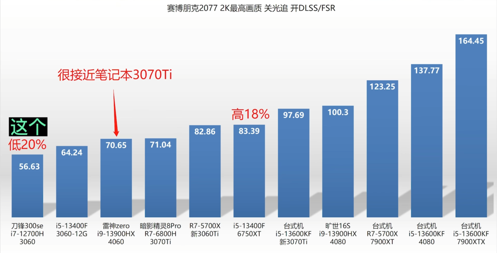 To więc oficjalnie pierwszy raz, kiedy Nvidia zaprojektowała karty graficzne z tej samej serii praktycznie tak samo zarówno dla rynku laptopów, jak i pecetów. Możemy więc teoretycznie wyciągnąć więcej na temat wydajności GeForce RTX 4060 z najnowszego testu jej mobilnej wersji na Bilibili, który objął laptopa Thunderobot Zero z Core i9-13900HX i 16 GB pamięci DDR5-4800 w cenie odpowiadającej poziomowi obecnych laptopów z RTX 3070. Jej TDP zostało jednak podkręcone do 140 watów, czyli spodziewanej maksymalnej wartości poziomu mocy.