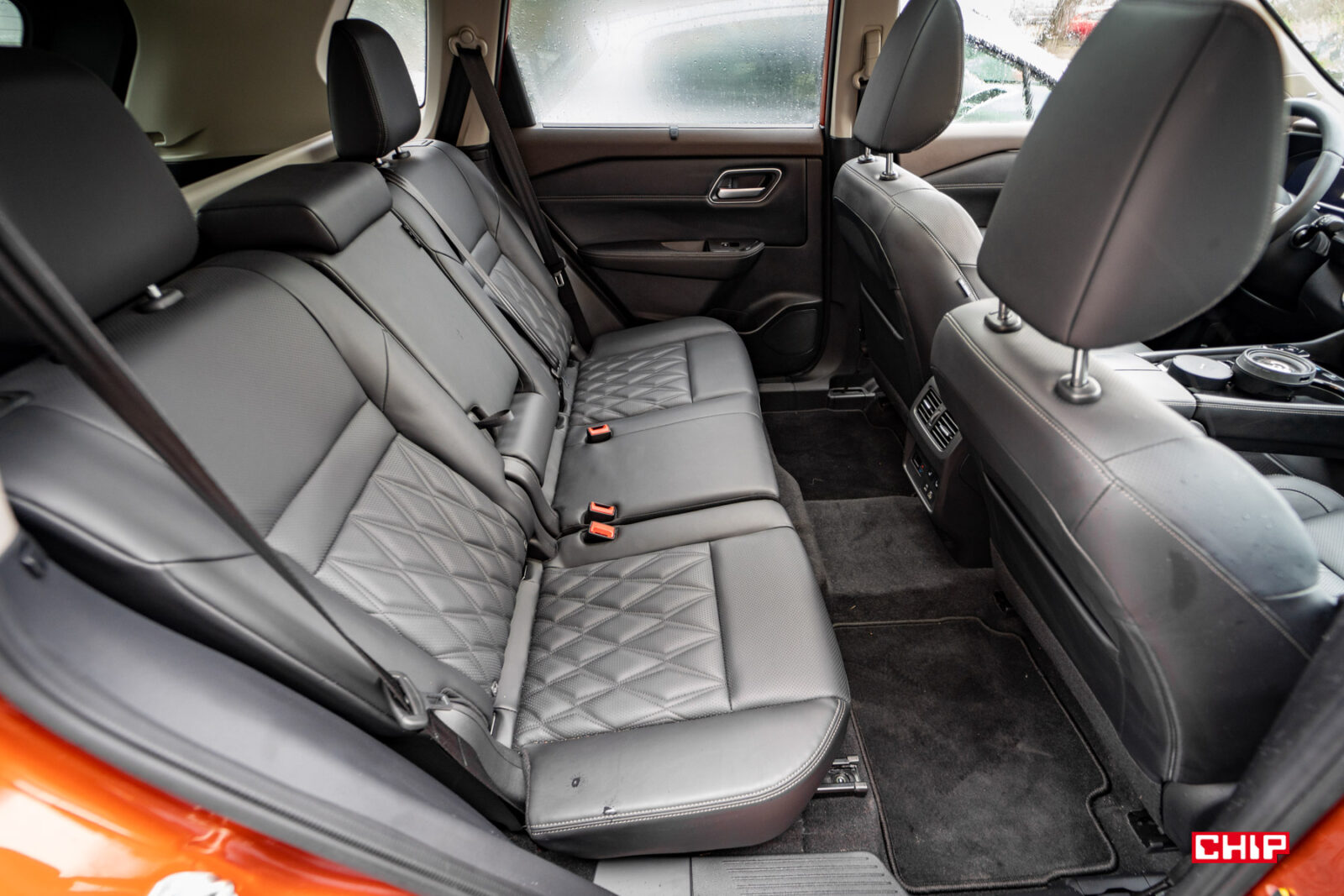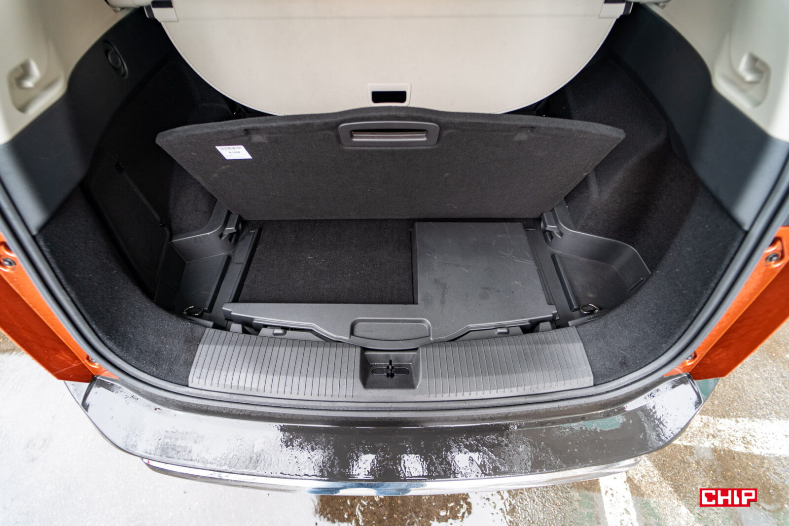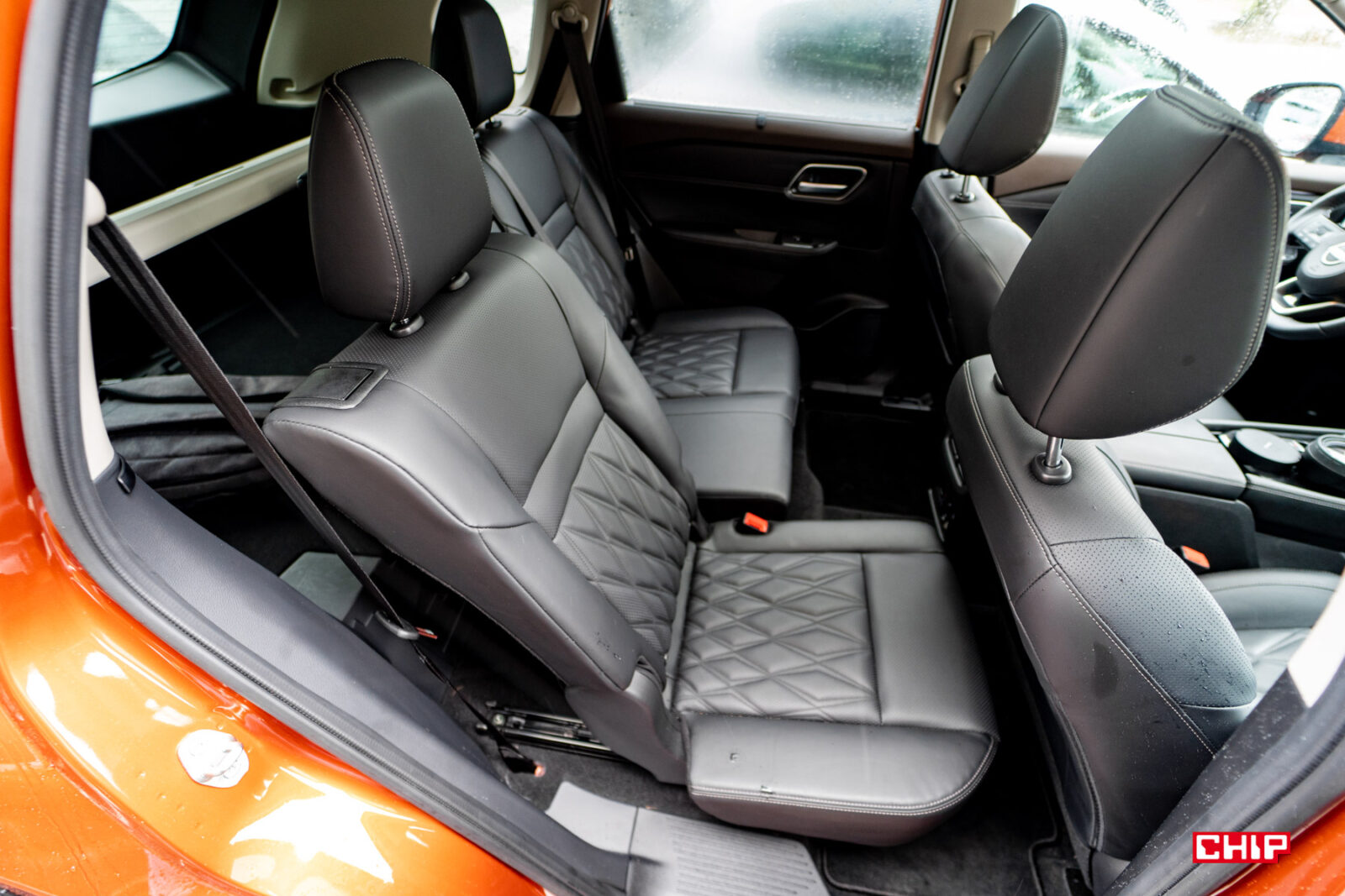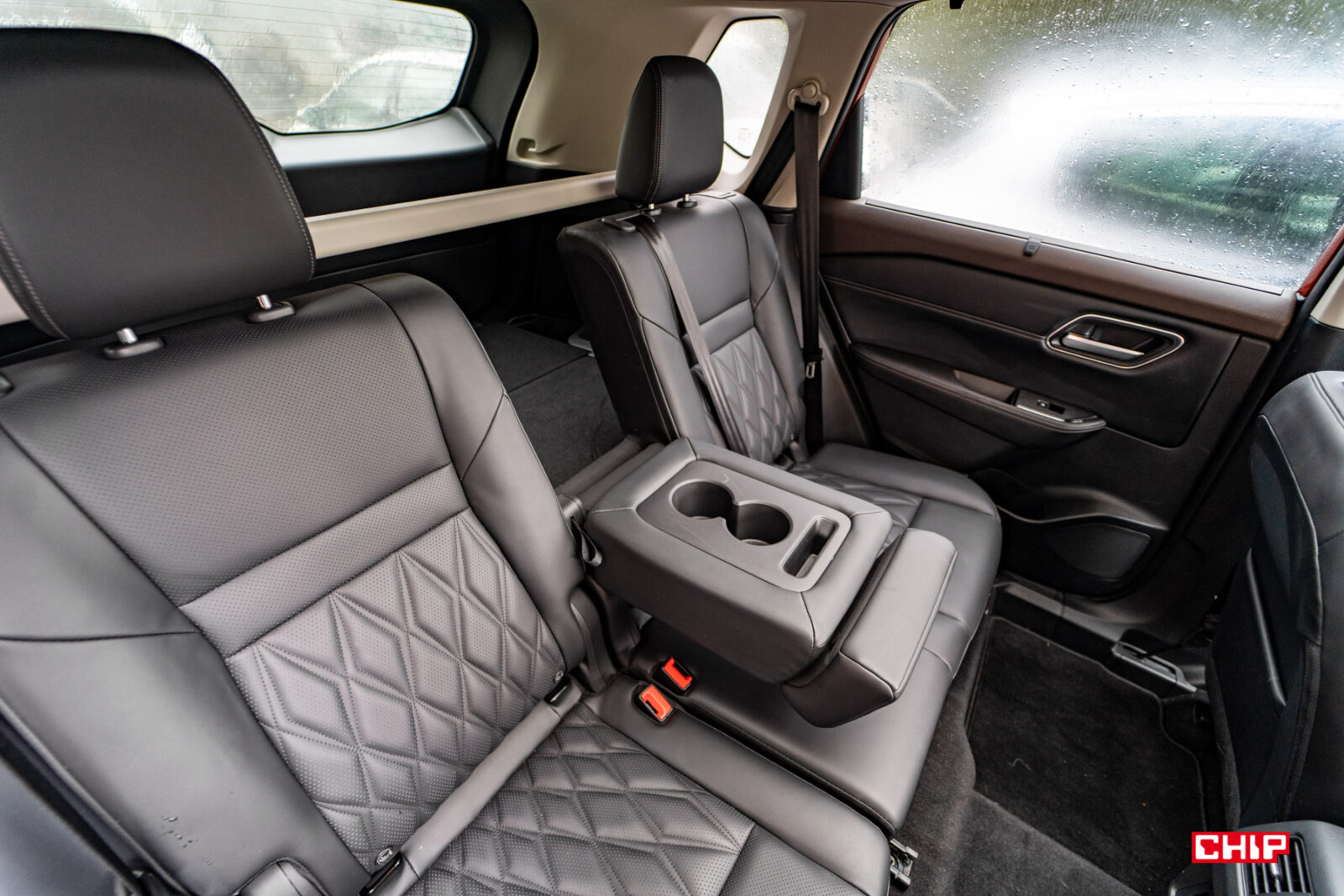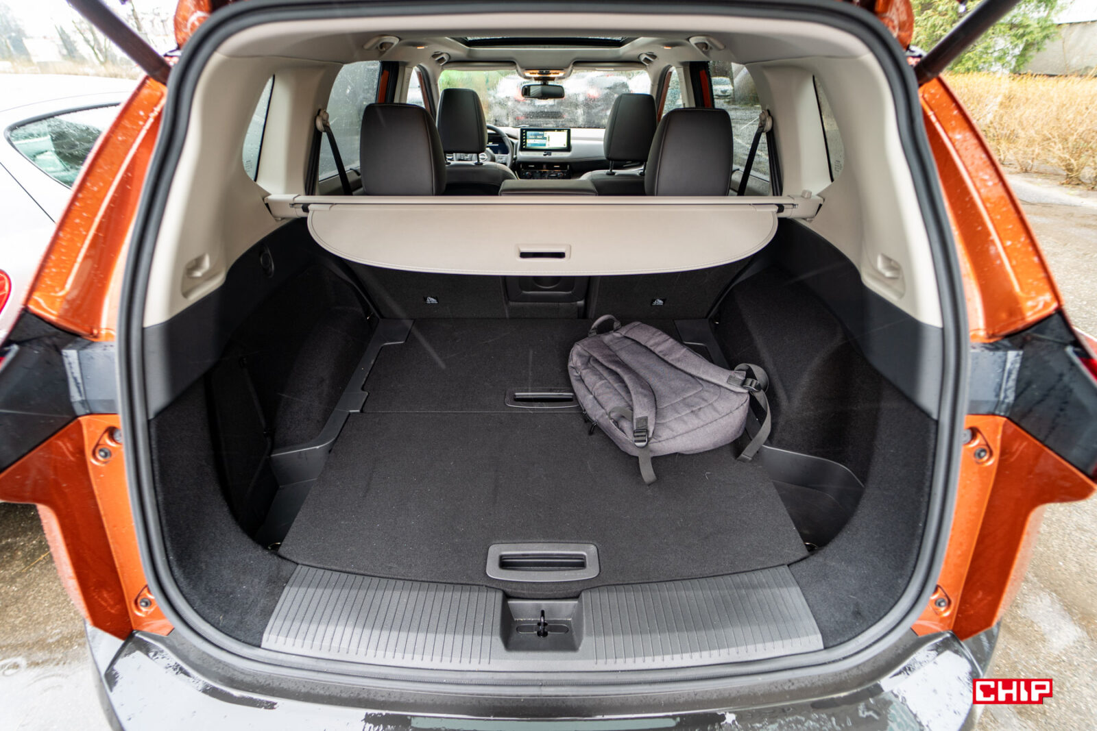 Testowany wariant X-Traila był 5-osobowy i nie do końca przekonuje mnie zagospodarowanie przestrzeni z tyłu. Oparcie środkowego siedzenia można położyć, robiąc z niego podłokietnik z uchwytami na napoje, ale przez to mamy na widoku cały bagażnik. Nie ma tu żadnej ścianki, czy czegokolwiek, co oddzielałoby pasażerów z tyłu od bagaży. Mamy też nieco wolnej przestrzeni między oparciami tylnych foteli, a roletą bagażnika. W końcu sam bagażnik ma w sumie trzy warstwy podłogi składanej na przeróżne sposoby. Ogółem brakuje mi tutaj jakiegoś wyraźnego podziału między tylną kanapą a bagażnikiem. Zamiast tego dostajemy trochę za bardzo otwartą przestrzeń.