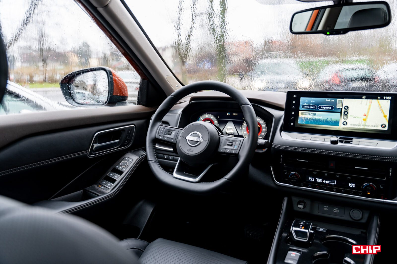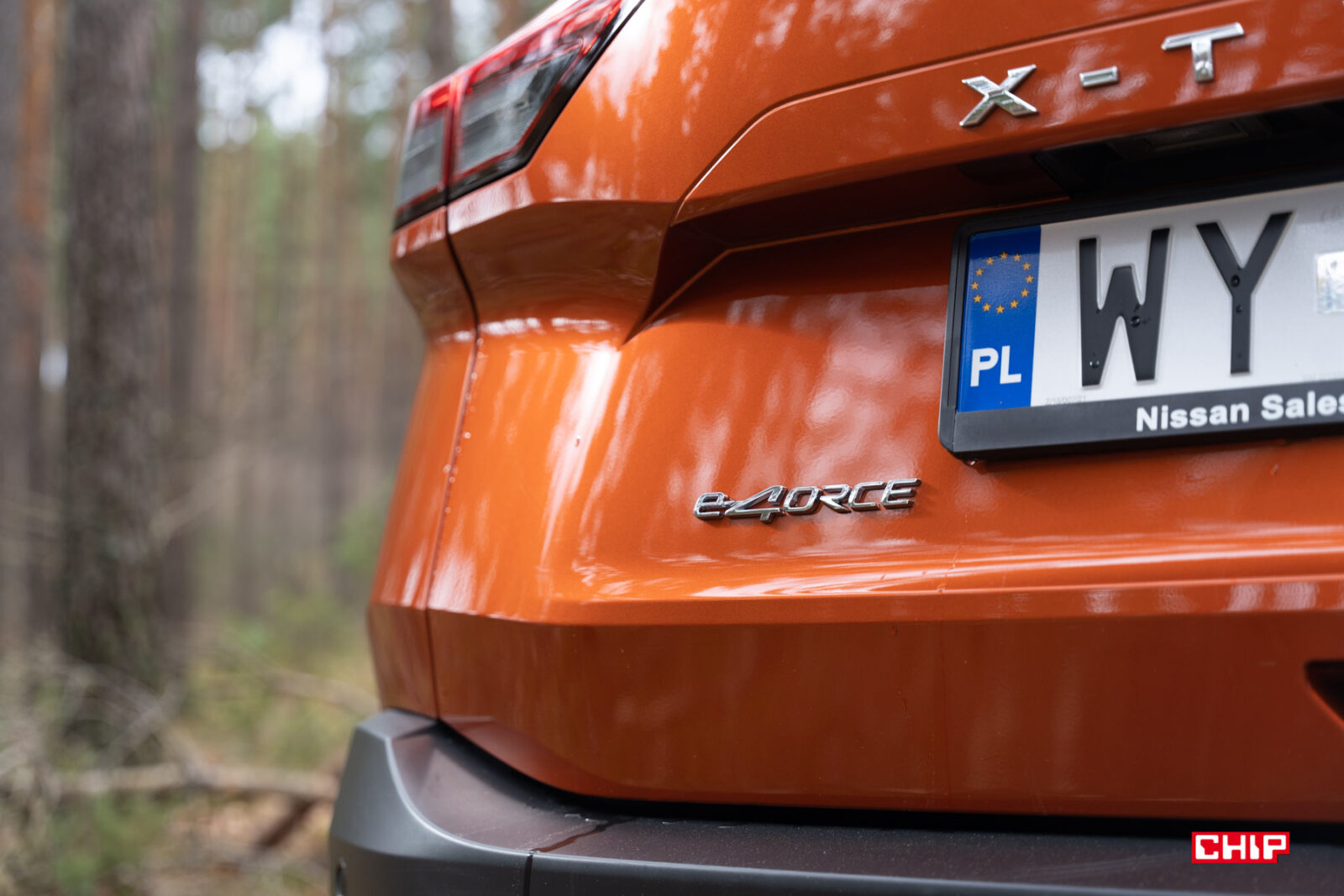Jednym z największych atutów X-Traila jest niewątpliwie napęd na wszystkie koła e-4orce. Każda oś ma swój własny silnik elektryczny, a moment obrotowy jest regulowany dla każdego koła indywidualnie, tak samo jak hamowanie. Priorytet dostają te koła, które w danej chwili mają najlepszą przyczepność. Według producenta połączenie e-4orce i e-Power pozwala na uzyskanie siły napędowej tylnej osi 10 000 razy szybciej niż w mechanicznych układach napędu na cztery koła. Jak to zrobili? Nie wiem, ale wiem, jak te wszystkie wyszukane rozwiązania wpływają na jazdę.