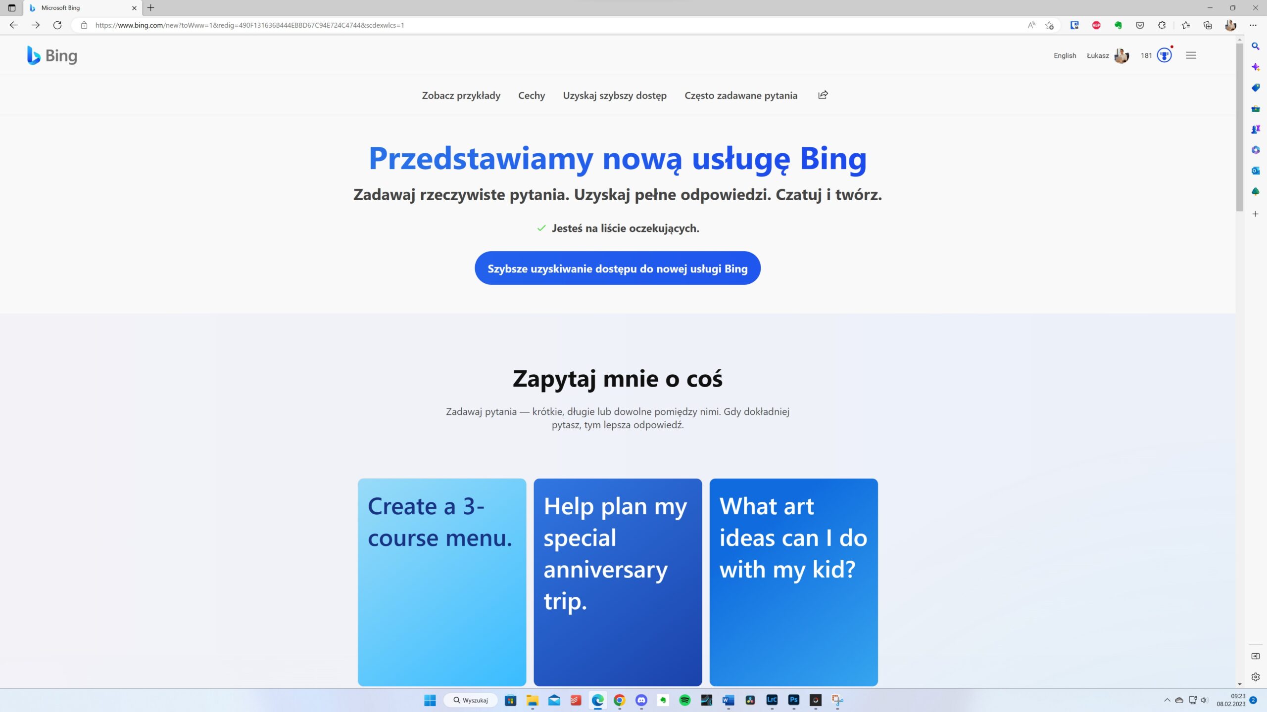 Nowy Bing został udostępniony publice już kilka godzin po zakończeniu konferencji. Póki co jest to tylko swoista wersja demo – dostępna w większości w języku angielskim, z kilkunastoma wybranymi przykładami możliwości, jakie ma dla nas Microsoft. Przyjrzyjmy się, co już dziś potrafi nowy Bing.