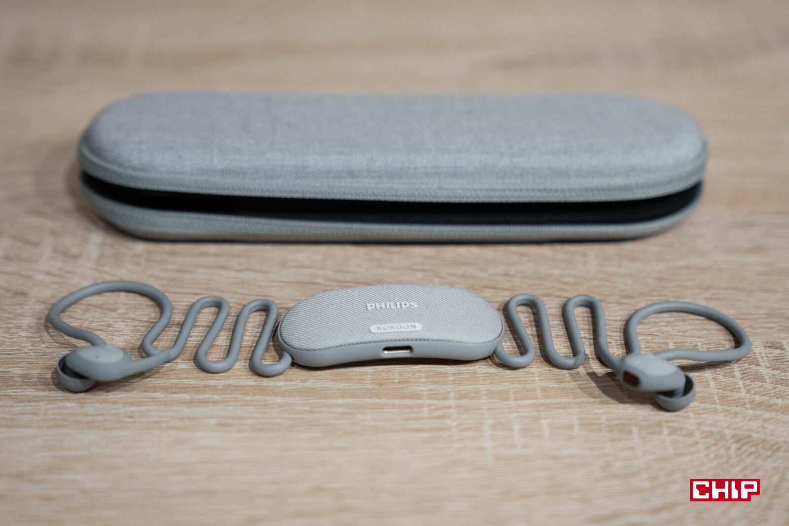 Oczywiście sam pomysł słuchawek pomagających w zasypianiu i utrzymaniu odpowiedniej dawki snu oraz zaawansowanego monitorowania parametrów nie jest bynajmniej nowy. Na palcach jednej ręki można jednak policzyć produkty, z którymi faktycznie dałoby się spać i to w różnych pozycjach. Co więc wyróżnia Philips N7808 spośród konkurencyjnych rozwiązań? Same słuchawki zostały maksymalnie odchudzone – ich profil ma zaledwie 6 mm grubości, a większość elektroniki została przeniesiona do płaskiego pojemnika, który spoczywa na karku.