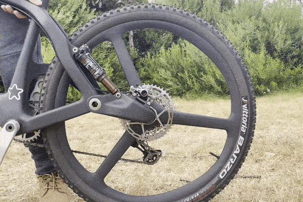 Inżynierowie firmy osiągnęli niemożliwe poprzez umieszczenie tylnego punktu obrotu na wspornikach łańcucha oraz kontrolującego wahacz specjalnie dostrojonego amortyzatora Fox Performance Float DP (112 mm) na wsporniku siodła. Takie rozwiązanie nie tylko zapewniło rowerowi nietypowy wygląd, ale też znaczną redukcję masy nieresorowanej i zmniejszenie ogólnej wrażliwości roweru na małe nierówności. Producent zapewnia też, że kinematyka tego systemu jest w stanie zwiększyć efektywność rowerzystów na stromych podjazdach, ale na tę chwilę trudno o obiektywne opinie na temat tego rozwiązania, więc musimy poczekać na testy, które zweryfikują zapewnienia firmy. A jeśli o tym już mowa…