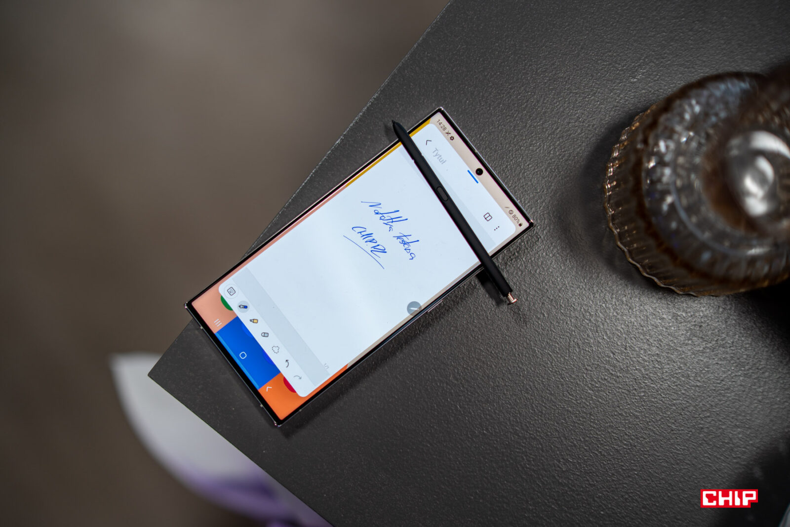 W Galaxy S23 Ultra oczywiście nie mogło zabraknąć wbudowanego rysika, który działa jeszcze lepsze. Wręcz nie kojarzę drugiego tak dobrze działającego rysika. Odwzorowanie odczucia pisania fizycznym długopisem po kartce jeszcze nigdy nie było tak dobre i ten element bardzo mi się spodobał.