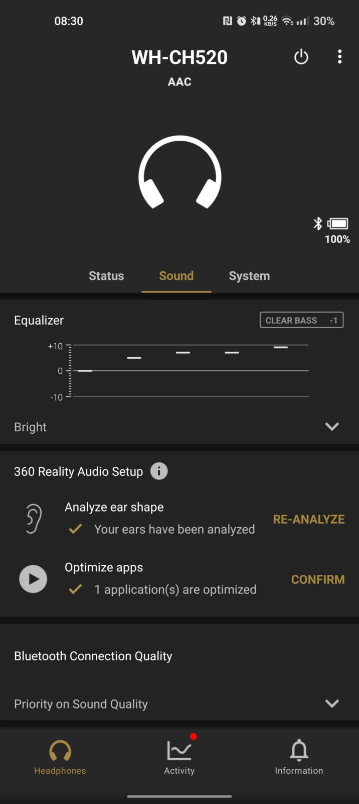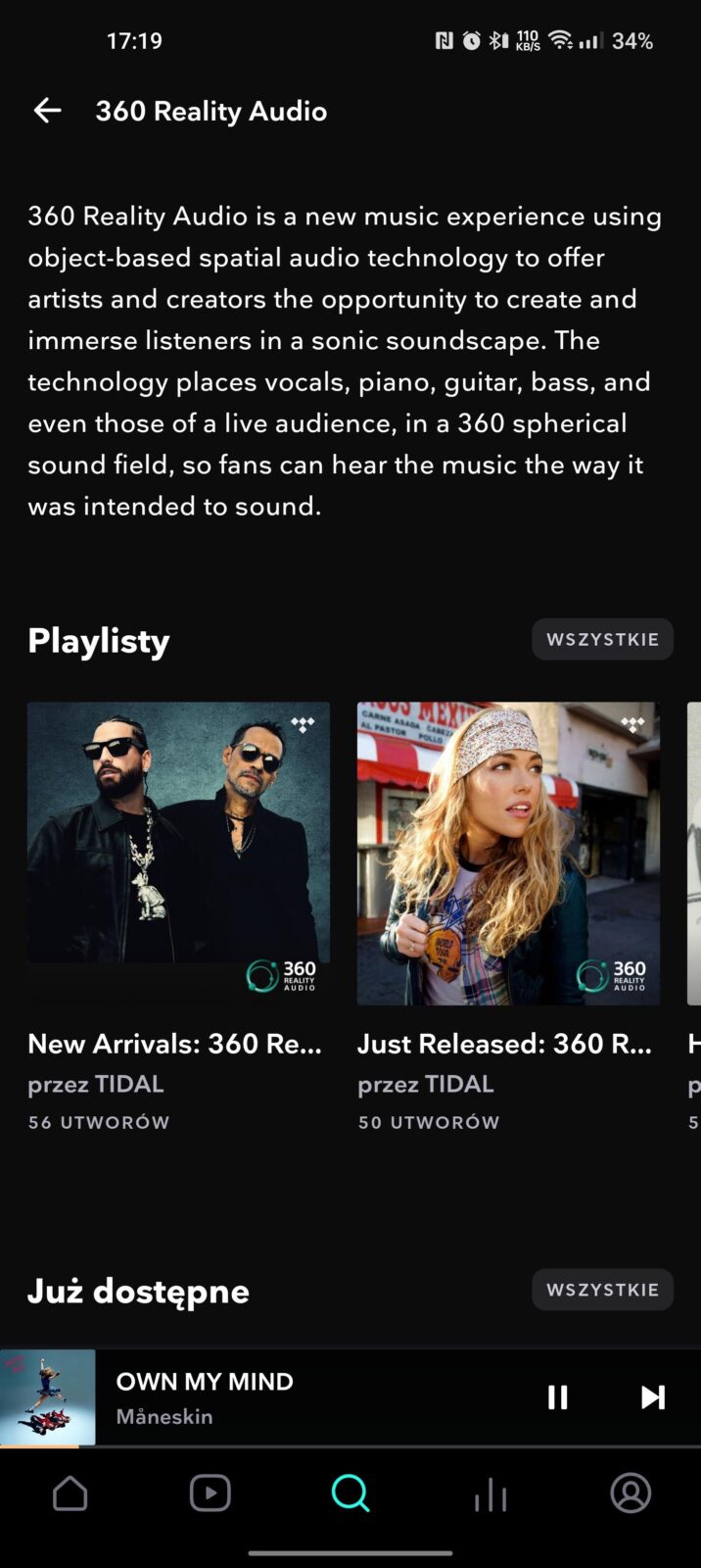 Sony zapewniło WH-CH520 wsparcie technologii 360 Reality Audio, która wymagała ode mnie przeprowadzenia krótkiego procesu konfiguracji, obejmującego przede wszystkim zrobienie zdjęć obu uszu. Na ich podstawie aplikacja jest w stanie dostosować charakter słuchawek tak, aby zapewnić możliwie najlepsze efekty funkcji 360 Reality Audio, którą przetestowałem w połączeniu z aplikacją Tidal z wykupionym najwyższym planem subskrypcyjnym (wydatek 39,99 zł miesięcznie).