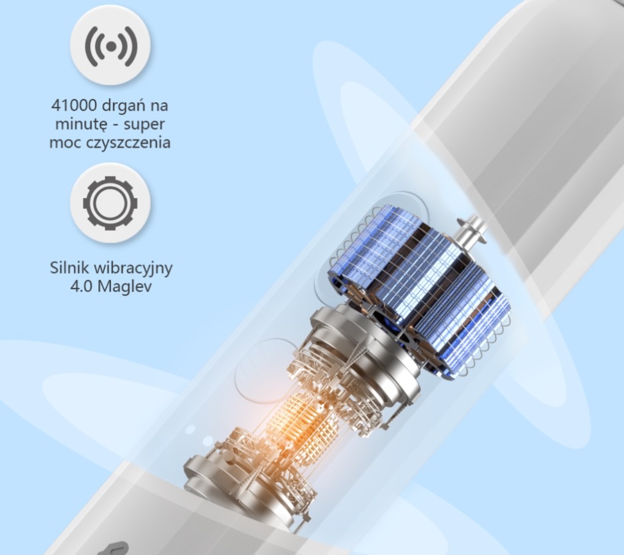Nandme NX7000 to nie byle jaka szczoteczka soniczna, a wyjątkowy model, za którym stoi marka wspierana przez inżynierów Xiaomi, co gwarantuje pewność tego, że sprzęt jest “tani, ale dobry”. Specyfikacja NX7000 rzeczywiście to potwierdza, bo szczoteczka może pochwalić się maksymalnie aż 41000 pulsami na minutę, a więc zdecydowanie ponadprzeciętnym wynikiem. Dzięki temu proces czyszczenia jest jeszcze skuteczniejszy i jeśli wierzyć producentowi, przewyższa możliwości manualnej szczoteczki aż dwukrotnie. Zwłaszcza że na bieżąco informuje o postępach, odmierzając 2 minuty w formie czterech 30-sekundowych cykli sygnalizowanych krótkim sygnałem.