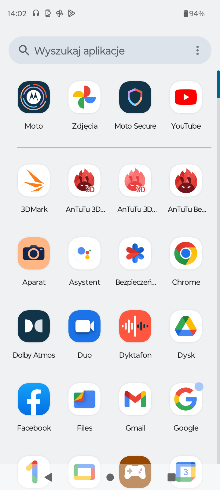 System działa płynnie i tak jak pisałem już wcześniej – dopiero uruchomienie kilku aplikacji w tle i kilkunastu kart w przeglądarce powoduje, że niedobory ilości pamięci RAM mogą być zauważalne. Z aplikacji wgranych przez producenta należy wymienić program „Moto”, w którym skonfigurujemy m.in. wygląd czcionek i ikon oraz dostosujemy sterowanie gestami, a także „Moto Secure”, służący m.in. do zabezpieczenia wybranych folderów, dostępu do ekranu i sieci.