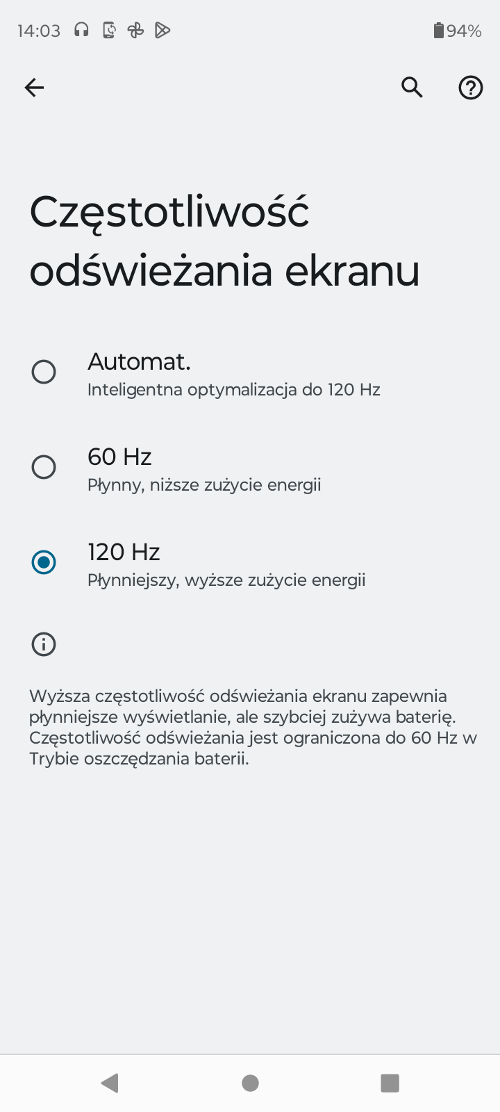 Dokładnie tak to wygląda – dostajemy smartfon za 1199 zł z 6,5 calowym wyświetlaczem o rozdzielczości 1600 x 720. Jasne, jest 120 Hz odświeżanie matrycy, ale szczerze mówiąc ciężko to odczuć – przy przewijaniu menu ustawień czy wiadomości SMS smużenie jest nadal zauważalne. Byłem przekonany, że to maksymalnie 90 Hz, a tu zonk – jednak 120 Hz.