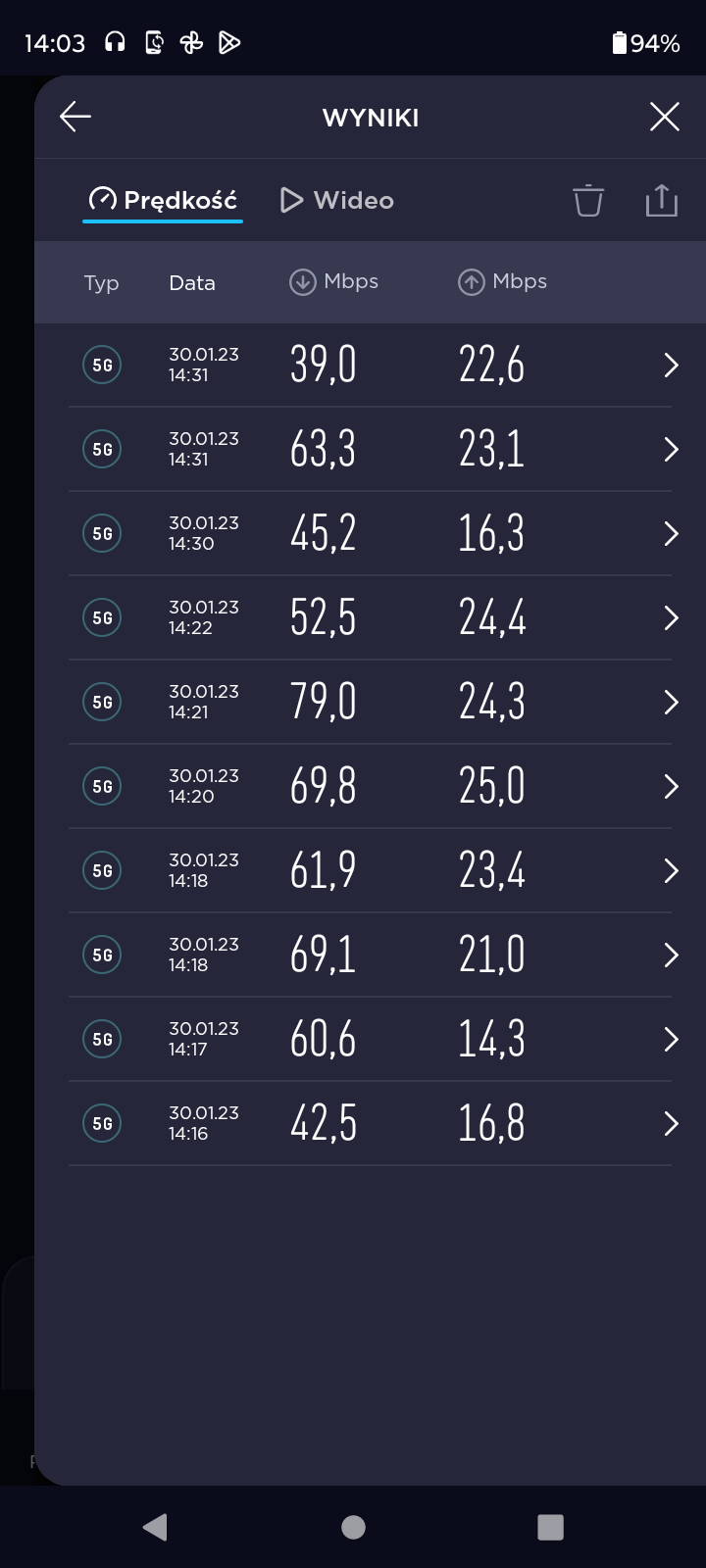 Motorola moto g53 5G może obsługiwać dwie fizyczne karty nano SIM oraz jedną wirtualną – eSIM. Ponadto możemy na niej korzystać z dobrodziejstw sieci 5G. To duży plus. Na lekki minus maksymalne prędkości, jakie osiągnąłem w programie „Speedtest” w sieci Orange w samym centrum Warszawy. A mianowicie na 10 prób, najwyższa prędkość pobierania danych wyniosła 79 Mb/s, a wysyłania – 25 Mb/s. Mogłoby być lepiej, no ale problem ograniczonej przepustowości mógł leżeć również po stronie sieci Orange.