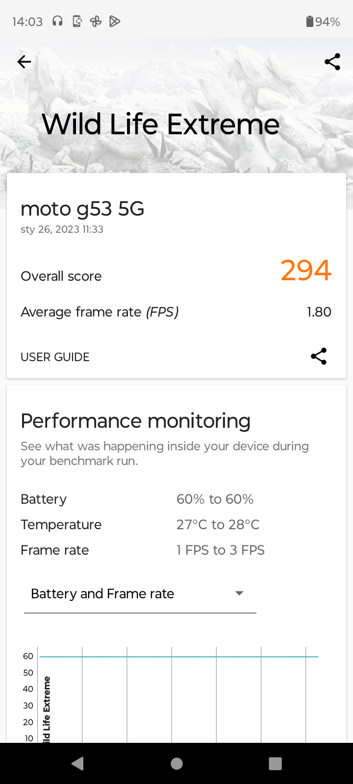 - 3D Mark (test Wild Life Extreme) – 294 pkt