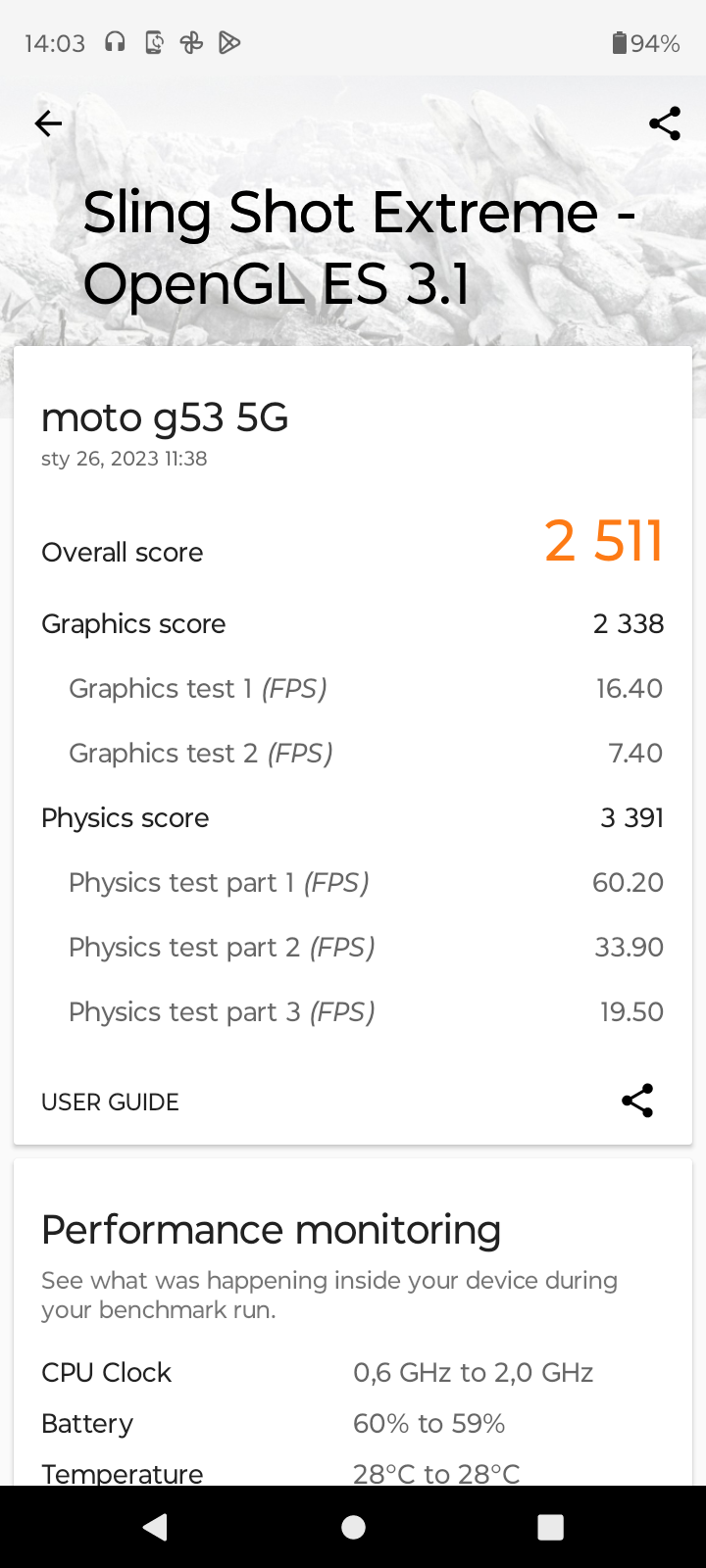Poza niewielką ilością pamięci RAM, Motorola zastosowała w tym modelu procesor Qualcomm Snapdragon 480+ 5G oraz grafikę Adreno 619, także wybitnych wyników wydajnościowych nie należy się spodziewać. Wyniki w benchmarkach nie wypadają co prawda źle, ale jednak zauważalnie słabiej niż w przypadku wspomnianego już Infinixa Note 12 2023: