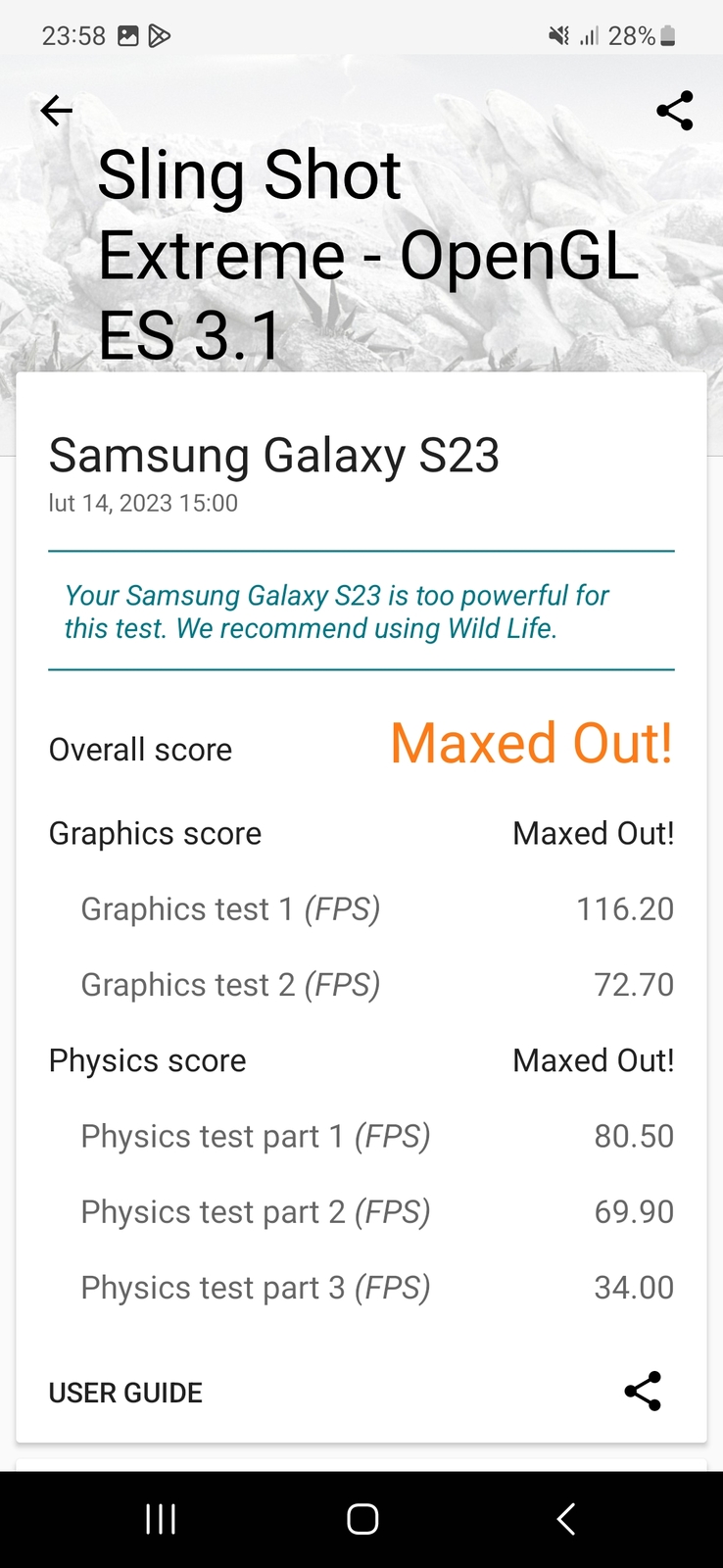 Oczywiście żadna gra dostępna w sklepie Google Play nie będzie stanowiła dla Galaxy S23 wyzwania i to jeszcze przez długie miesiące, jeśli nie przez lata. W codziennym użytkowaniu smartfon również działa nienagannie.