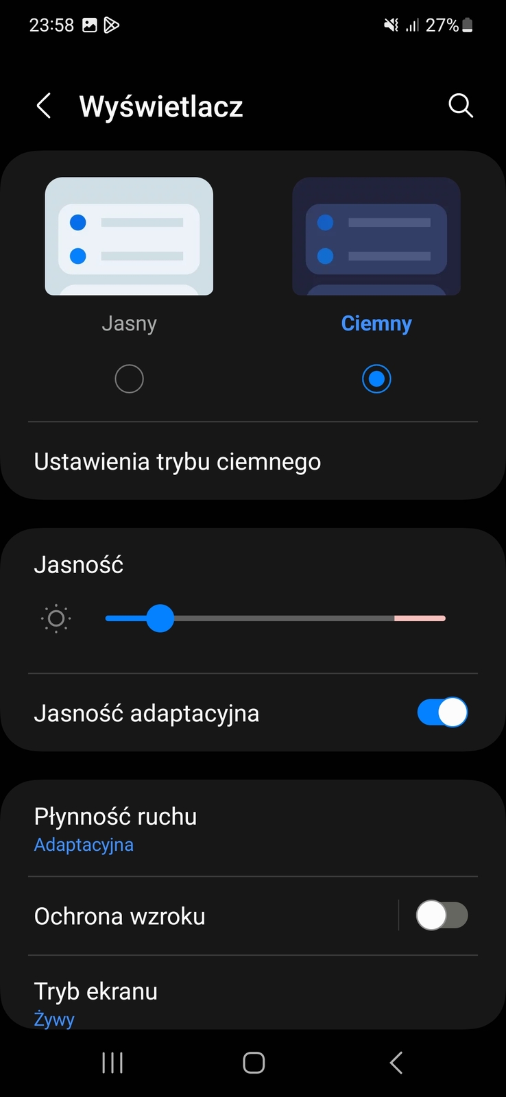 W ustawieniach znajdziemy tryb ciemny dla menu, możliwość regulacji częstotliwości odświeżania i kolorystyki, filtr światła niebieskiego oraz możliwość edycji przycisków na pasku nawigacyjnym. Oczywiście jest również Always On Display. Możemy też zwiększyć czułość panelu dotykowego i wybrać w których aplikacjach wcięcie na obiektyw przedniego aparatu ma być widoczne, a w których ukryte. Słowem: jest wszystko, co potrzeba.