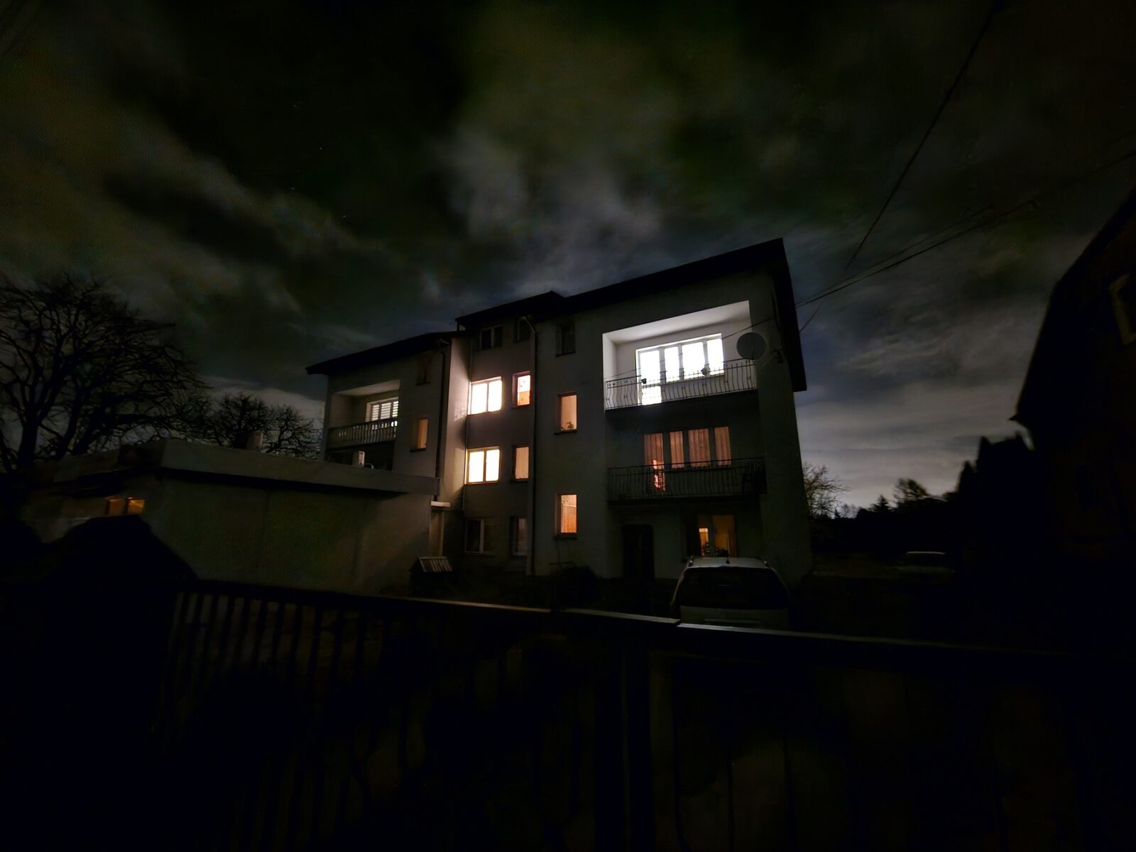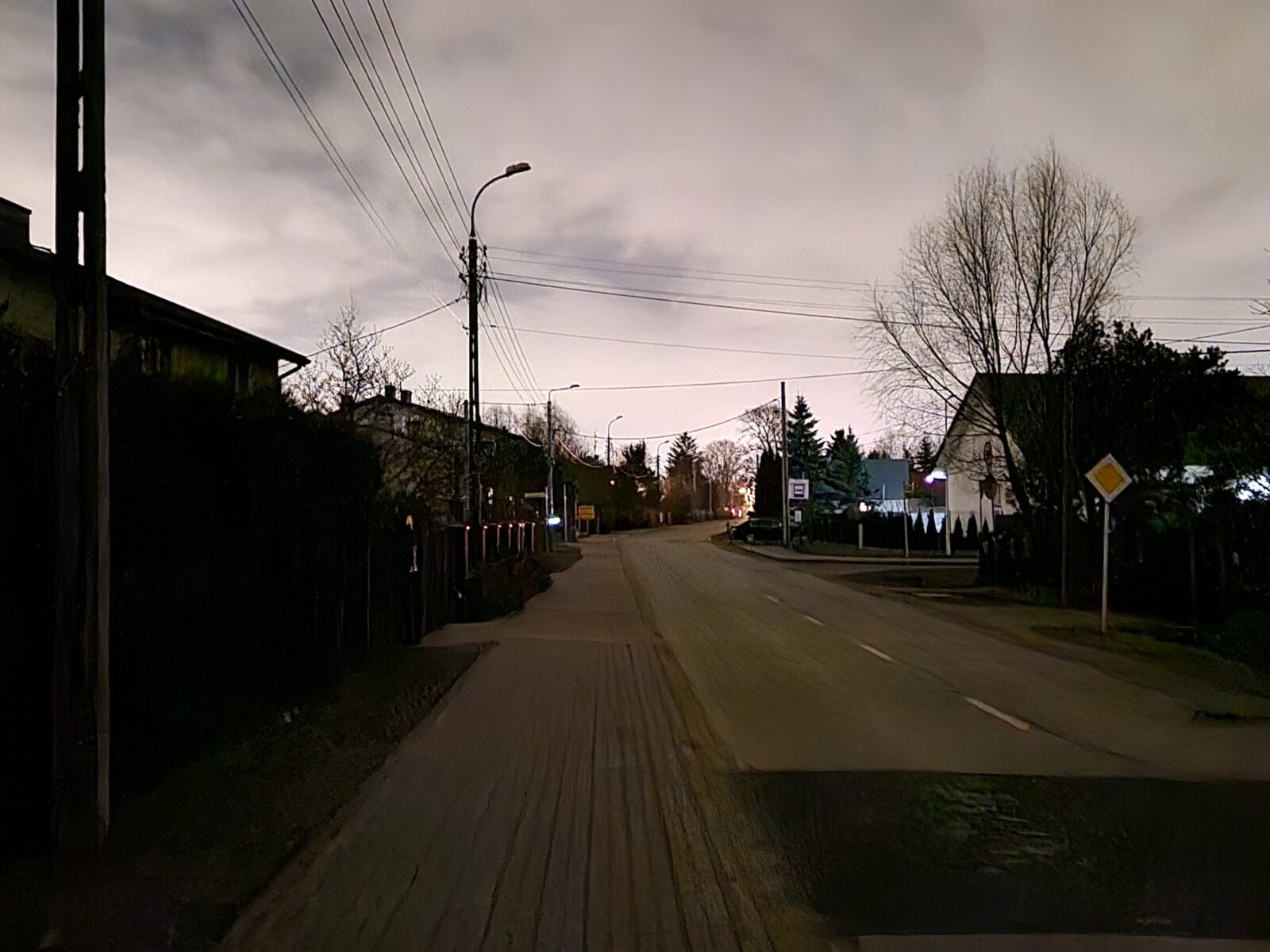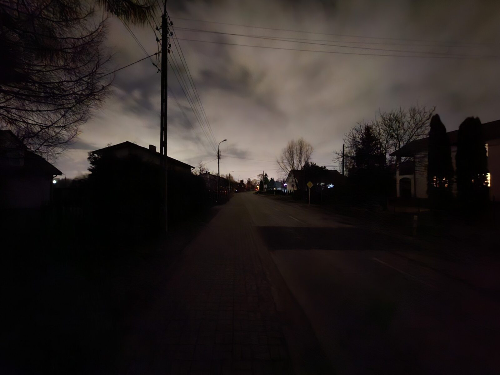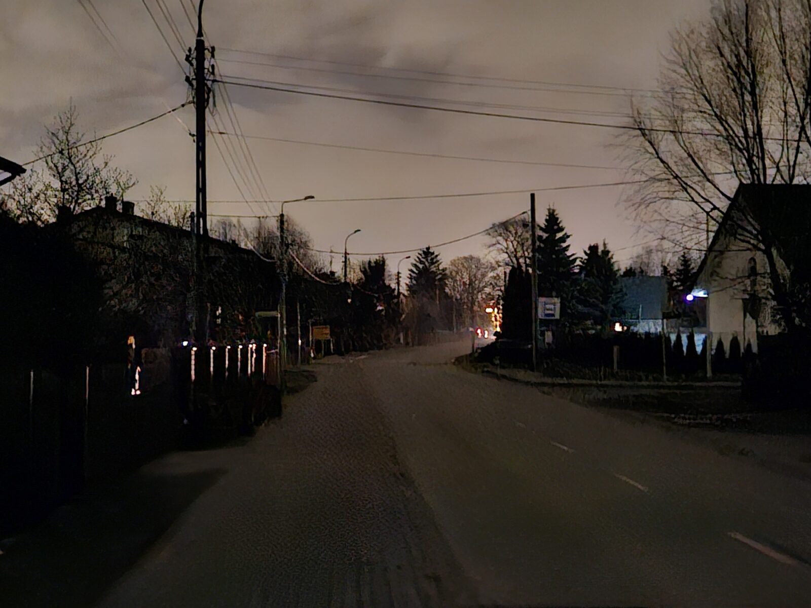 Zdjęcia nocne zrobiłem na potrzeby testów z dala od ulicznych latarni i w sumie jestem mile zaskoczony. Szumy w trybie automatycznym ogólnie były minimalne, poza zdjęciami z teleobiektywu, gdzie kolorowy szum był widoczny. Po włączeniu trybu nocnego, zdjęcia stawały się dużo jaśniejsze i mimo, iż na ekranie komputera widać delikatnie rozmazane kontury i niewiele detali, to na ekranie smartfonu prezentują się one naprawdę imponująco.