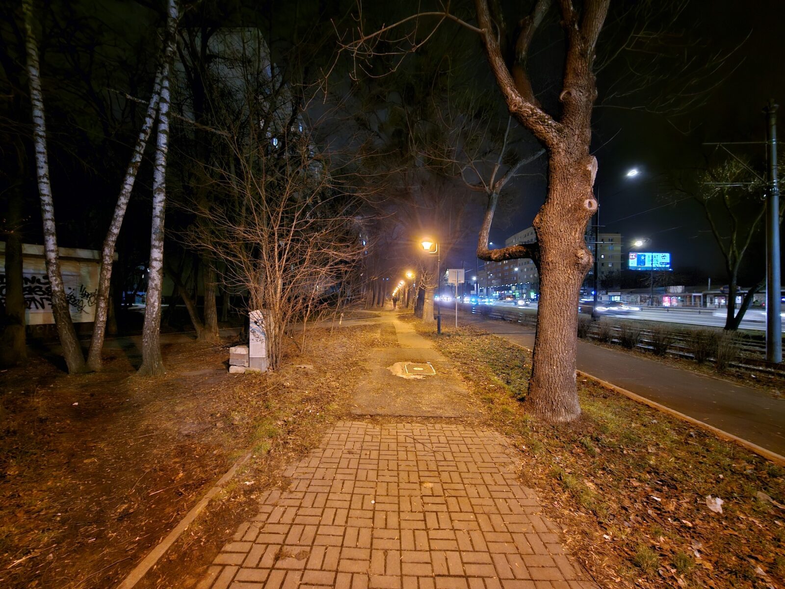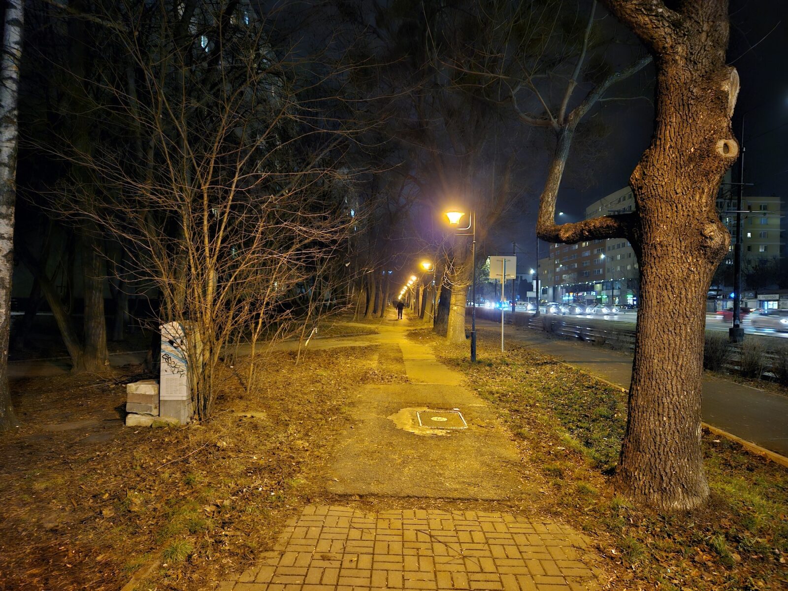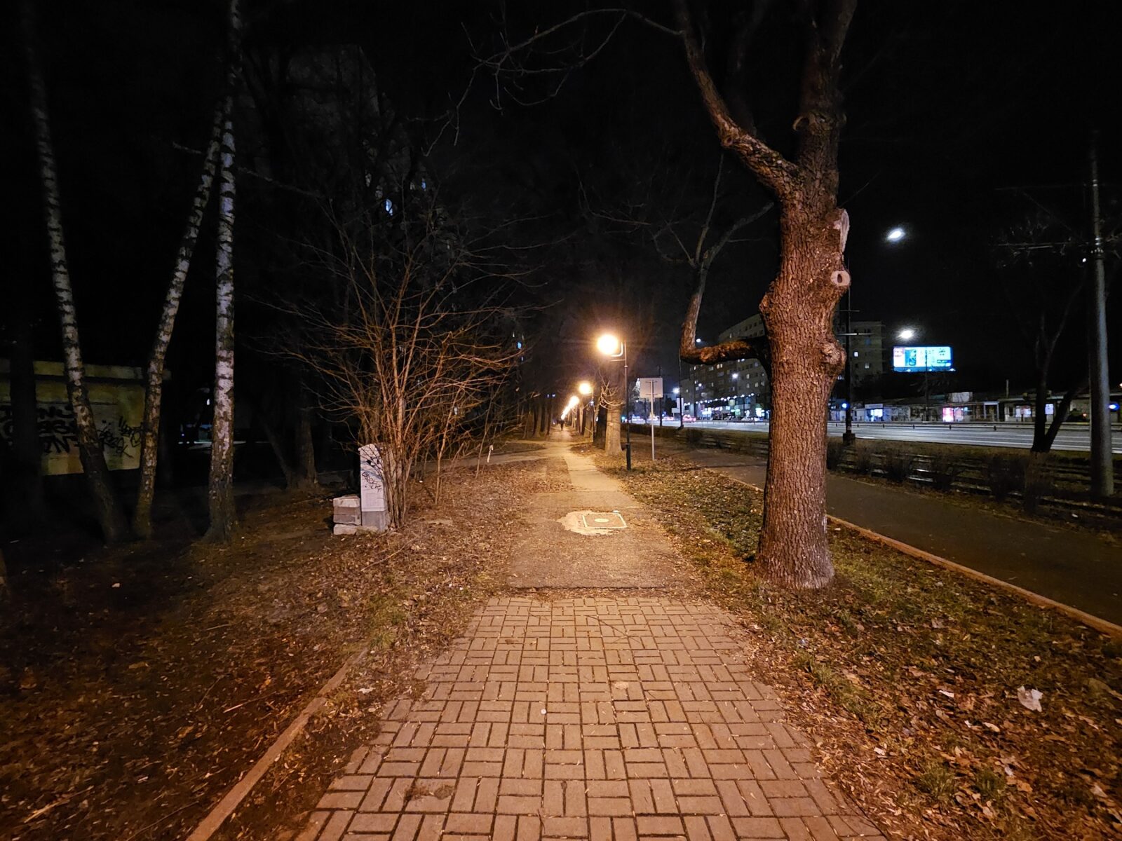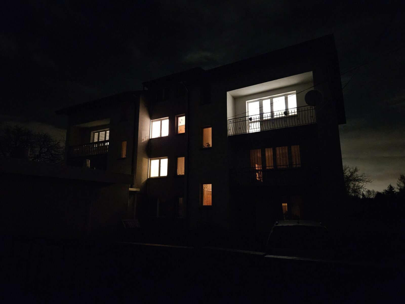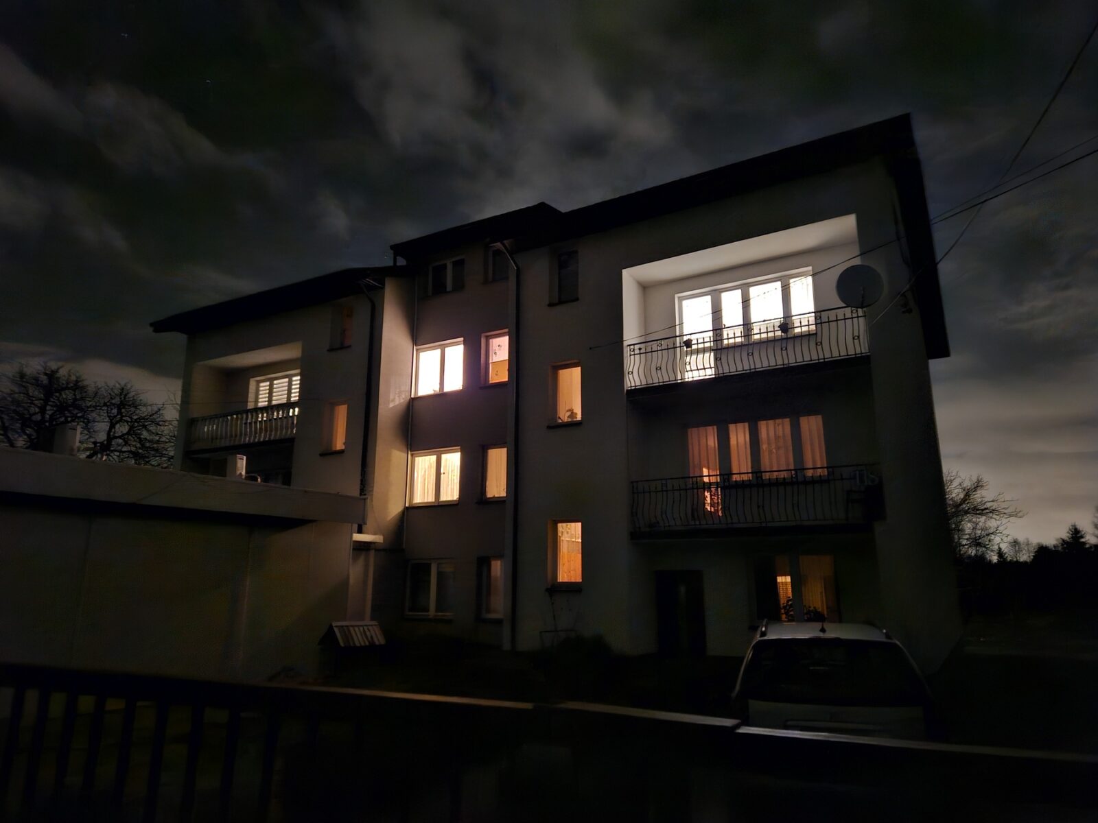 Zdjęcia nocne zrobiłem na potrzeby testów z dala od ulicznych latarni i w sumie jestem mile zaskoczony. Szumy w trybie automatycznym ogólnie były minimalne, poza zdjęciami z teleobiektywu, gdzie kolorowy szum był widoczny. Po włączeniu trybu nocnego, zdjęcia stawały się dużo jaśniejsze i mimo, iż na ekranie komputera widać delikatnie rozmazane kontury i niewiele detali, to na ekranie smartfonu prezentują się one naprawdę imponująco.