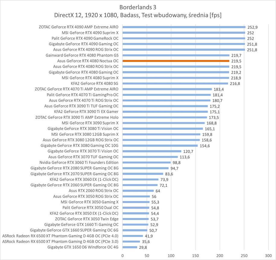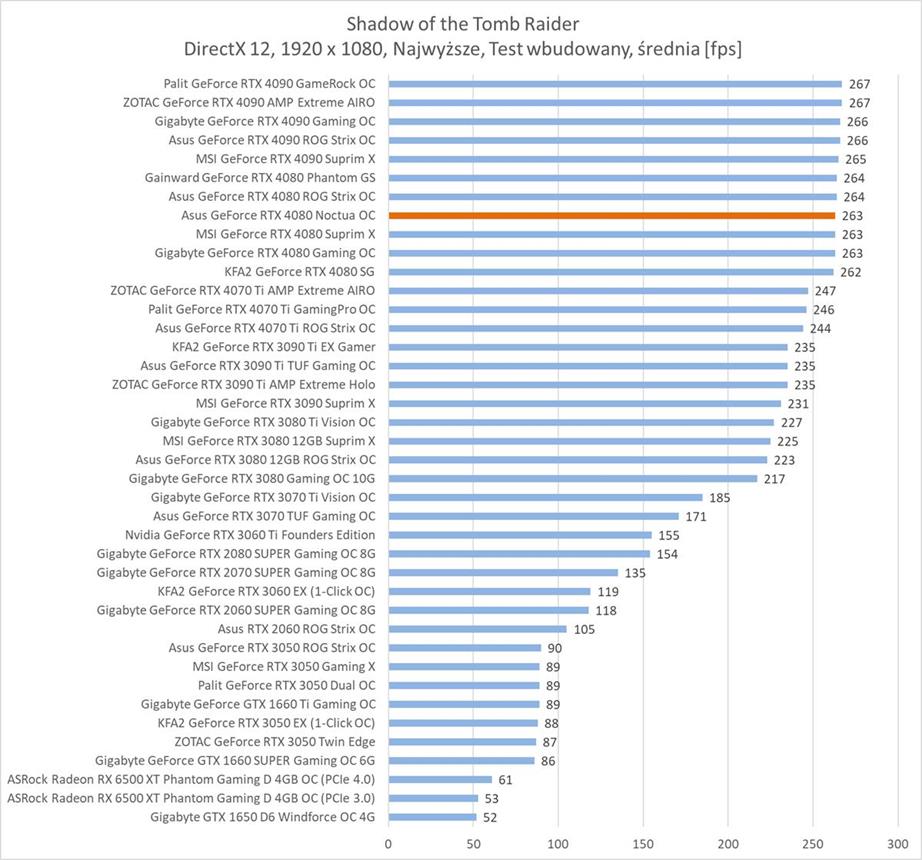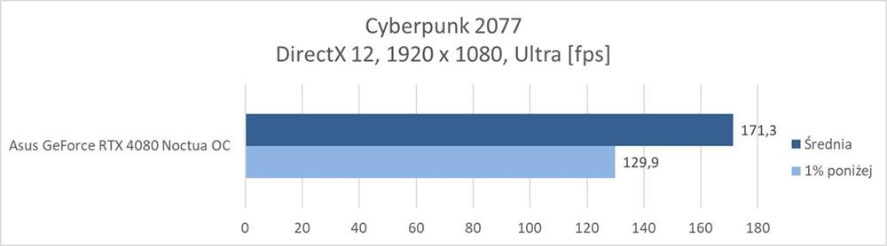Wydajność w 1920 x 1080 jest świetna, tak jak w przypadku każdego RTX 4080. Bez problemów więc możecie odpalać gry w maksymalnych detalach.