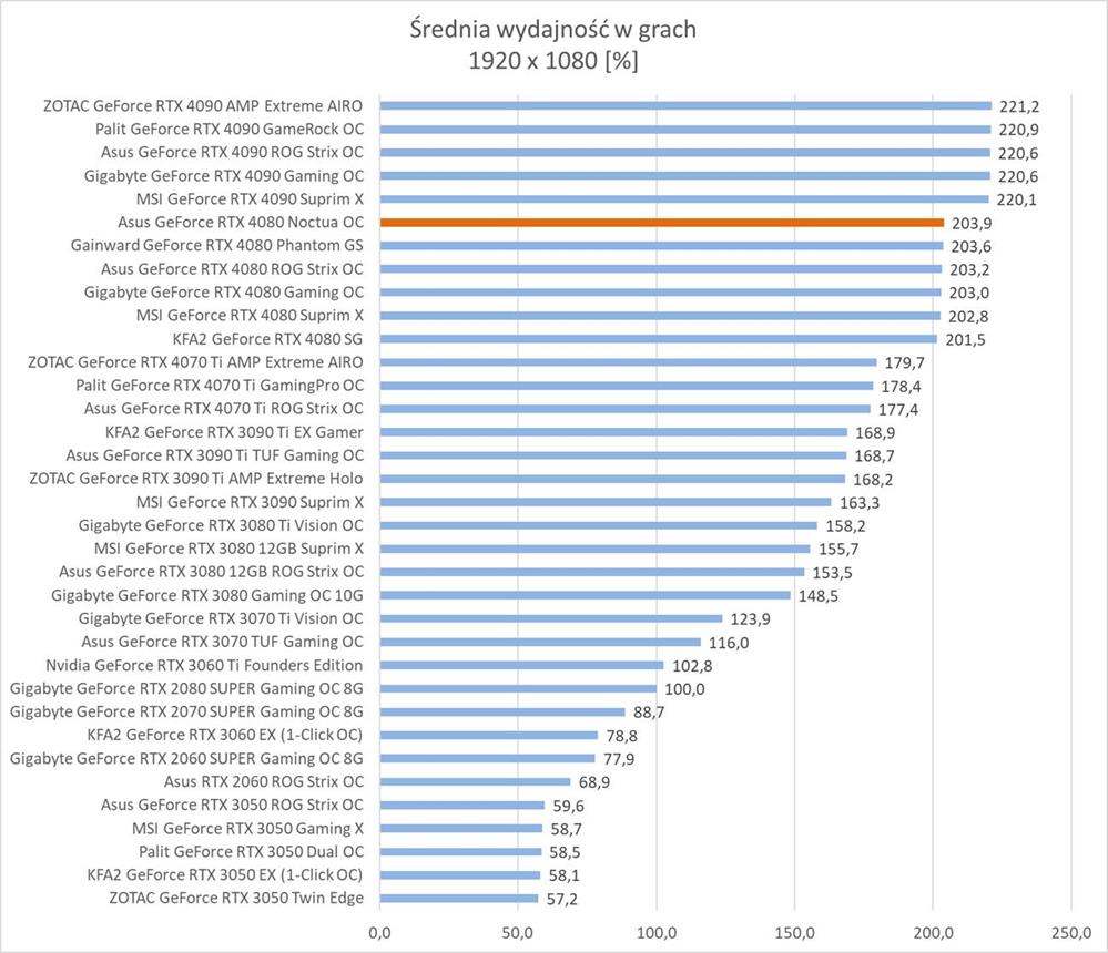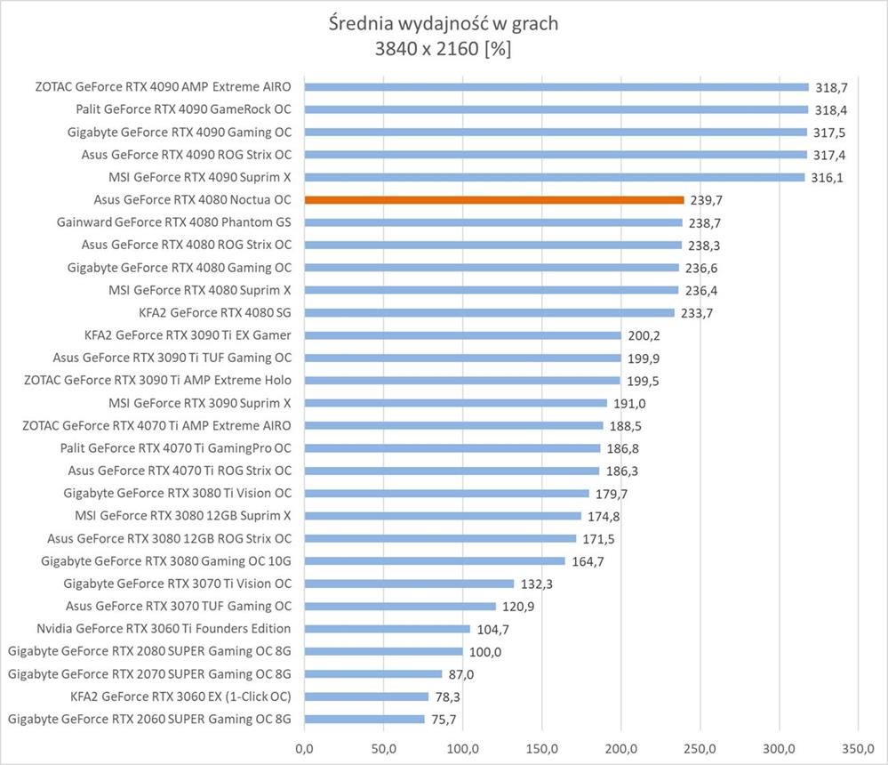 Test Asus GeForce RTX 4080 Noctua OC – podsumowanie