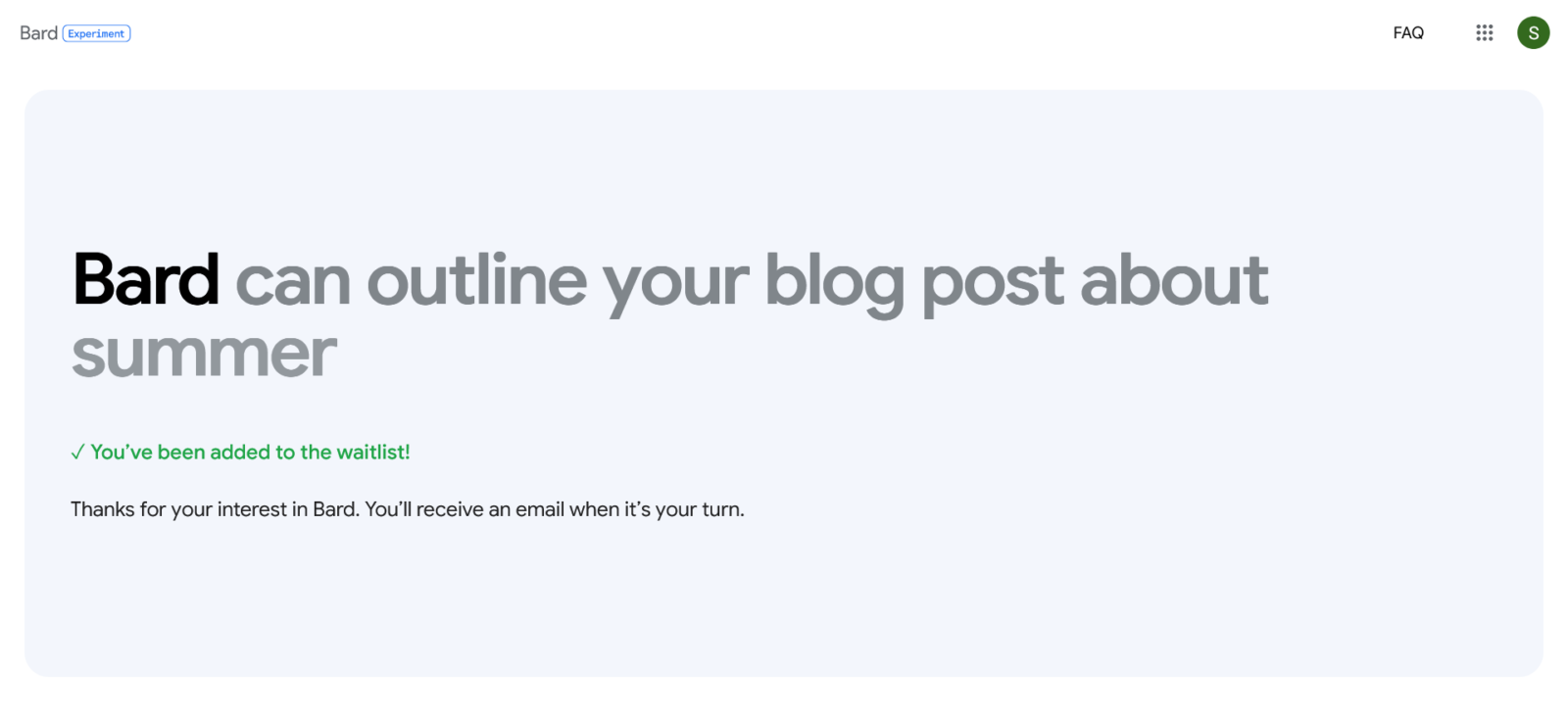 Jestem na liście oczekujących. Na razie nie jest tak prosto dobić się do tego “wczesnego eksperymentu” – taki przydomek zyskał chatbot Bard od ludzi z Google’a. Nie bez powodu, bo wszystkie duże modele językowe (LLM) do doskonalenia swojego systemu wymagają sygnałów zwrotnych od użytkowników. Na razie łatwiejszą ścieżkę do Barda mają mieszkańcy USA oraz Wielkiej Brytanii, ale używając VPN-a możecie spróbować wbić się na tzw. waitlistę. Google obiecuje stopniowo rozszerzać terytorialnie program testów, więc może i u nas z czasem Bard zacznie być dostępny.