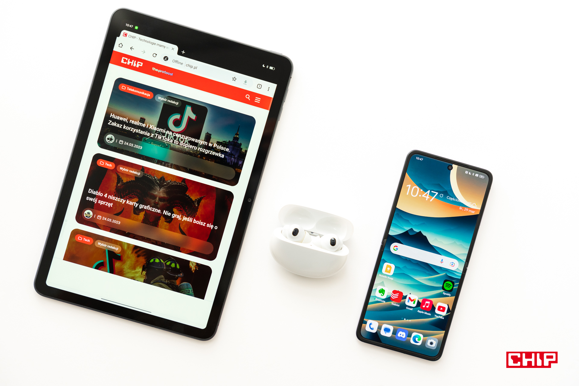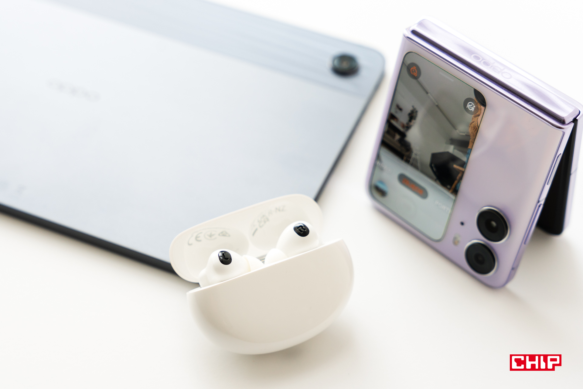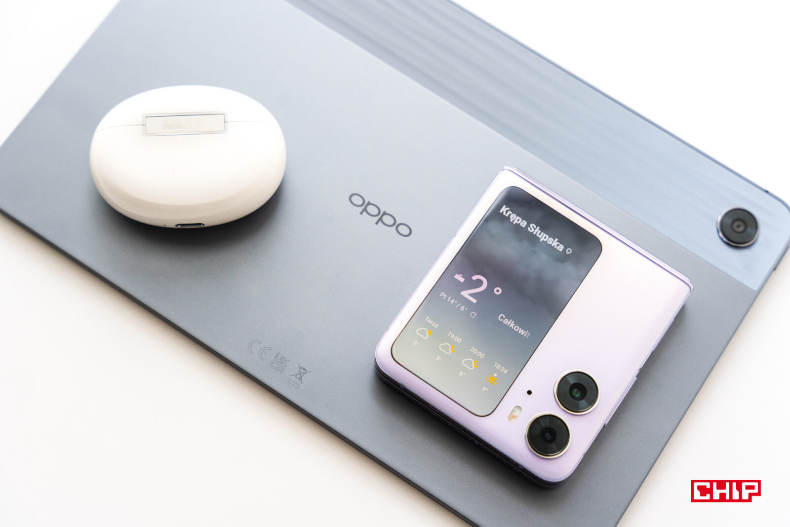 Pomówmy jednak pokrótce o każdym z tych sprzętów. OPPO Find N2 Flip zachwycił mnie od pierwszego wejrzenia i nie przestał zachwycać przez kilka tygodni testów. Jako entuzjasta składanych smartfonów doceniam starania OPPO, by pokazać coś naprawdę niezwykłego. Ta niezwykłość zaczyna się już na etapie zamkniętej „klapki” telefonu, na której znajdziemy największy w tej klasie wyświetlacz o przekątnej 3,26”, który z każdą aktualizacją oprogramowania potrafi coraz więcej. Od razu widać też aparaty o naprawdę dobrej jakości, zwłaszcza jeśli mowa o głównym sensorze 50 Mpix, opracowanym we współpracy z marką Hasselblad i wspieranym przez autorski układ MariSilicon X, odpowiadający m.in. za zaawansowane algorytmy odszumiania obrazu, co przekłada się na lepsze rezultaty w trudnych warunkach oświetleniowych.