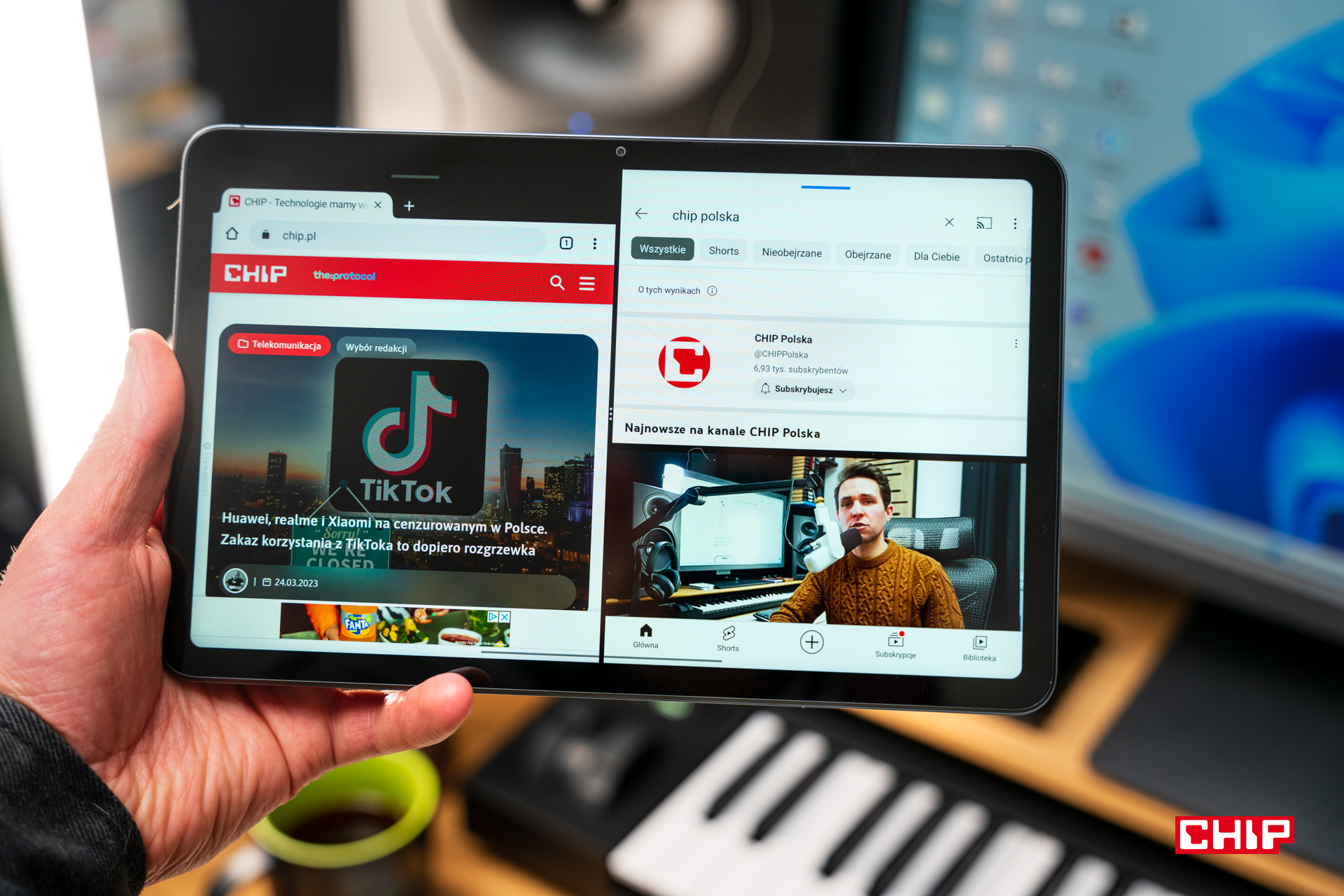 - Dzielony ekran – możliwość podzielenia ekranu na pół podczas korzystania z dwóch aplikacji, co pozwala na szybkie przełączanie się między programami,
