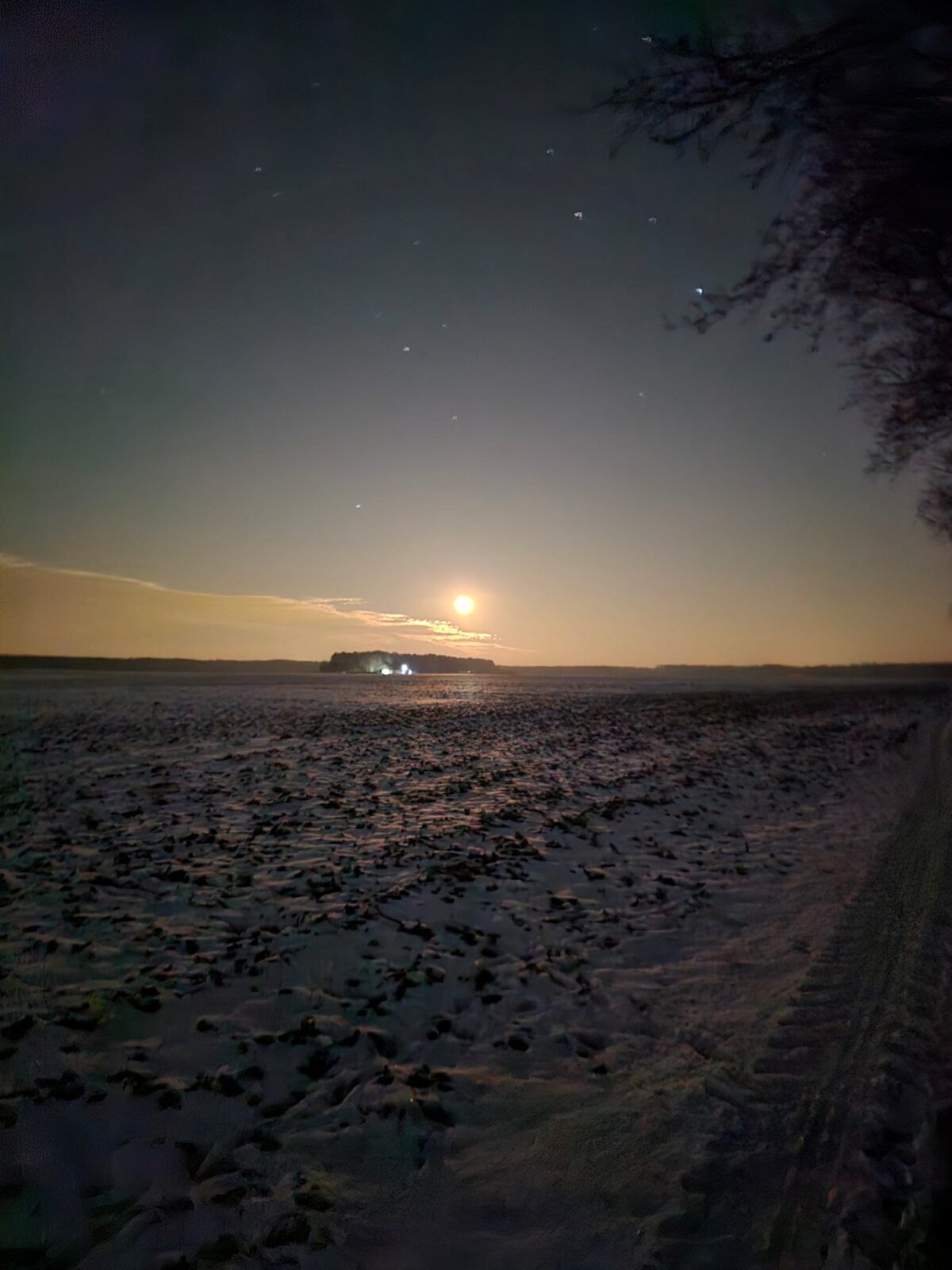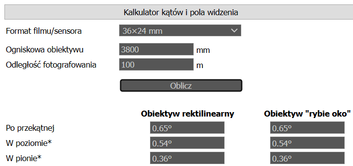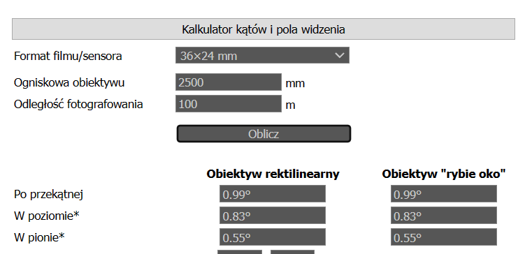 Jak z tego wynika, obiektyw rektalinearny o ekwiwalencie ogniskowej 2500 mm ma pole widzenia ~1°, czyli księżyc w pełni zajmie w najlepszym przypadku nieco ponad połowę długości kadru, a do tego by księżyc zajął cały kadr w pionie potrzeba już 3800 mm. Mój redakcyjny kolega testował jakiś czas temu obiektyw Canon RF 1200 mm f/8 L IS USM, który po podpięciu do aparatu APS-C dałby ekwiwalent 1800 mm. Koszt obiektywu 115 tysięcy złotych plus aparat, nie mówiąc o takich groszowych sprawach jak odpowiedni statyw.