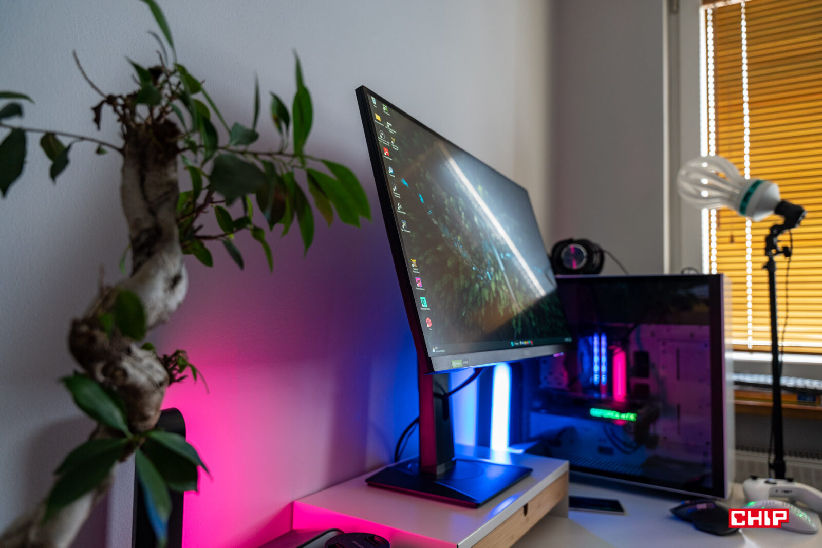 Przeciętnie wypada równomierność podświetlenia. Różnica potrafi sięgać nawet 50 nitów pomiędzy poszczególnymi częściami ekranu i widać też zmianę koloru, szczególnie przy jasnych barwach. Co niestety bywa domeną paneli IPS, podobnie jak kąty widzenia. Te dla odmiany zasługują na dużą pochwałę, bo są niemal maksymalne. Jak nie spojrzymy na ekranie, obraz pozostanie dobrej jakości. Bardzo pozytywnie wypada też powłoka antyrefleksyjna.