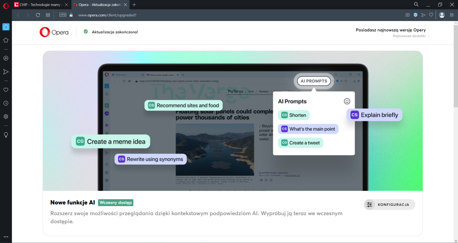 ChatGPT w przeglądarkach Opera i Opera GX – jak włączyć AI Prompts?