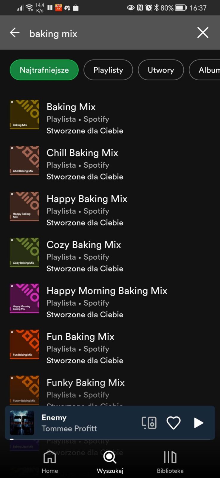 Żeby wypróbować tę nowość wystarczy wpisać aktywność (po angielsku), do której chcesz dobrać muzykę i dodać do tego słówko „mix”. Serwis od razu podrzuci ci dziesiątki najróżniejszych playlist. Chcesz coś do gotowania? Nie ma sprawy, tylko musisz określić, czy ma być to zwykłe gotowanie, wesołe, romantyczne czy może włoskie. Podobnie w przypadku innych aktywności, muzykę możemy dobrać pod nasz nastrój w każdej sytuacji, jaka przyjdzie nam do głowy. Algorytmy Spotify zadbają o to, by w każdym momencie naszego życia towarzyszyła nam odpowiednia ścieżka dźwiękowa.