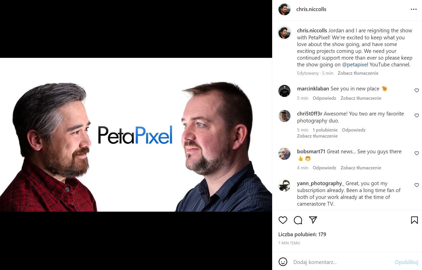 DPReview zakończy oficjalnie działanie 10 kwietnia 2023 roku. Po tym dniu zespół straci pracę (aczkolwiek sądzę, że do tego momentu ustawi się kolejka chętnych do ich zrekrutowania), a strona przejdzie na bliżej nieokreślony czas w tryb tylko do odczytu, po którym ostatecznie zniknie z sieci. Użytkownicy do 6 kwietnia mogą żądać dostępu do wszystkich swoich tekstów i zdjęć, jakie znalazły się na stronie i forum. Na kanale DPReview TV także przestaną pojawiać się nowe treści, ale Chris i Jordan już zapowiedzieli, że ich fotograficzne show nie zniknie z YouTube’a; panowie prawdopodobnie pójdą po prostu „na swoje”. Tuż po publikacji naszego tekstu Chris Niccols na swoim Instagramie poinformował, iż odtąd duet będzie tworzył materiały dla serwisu PetaPixel.