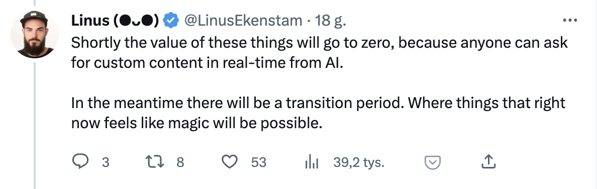 Niebawem wartość tych rzeczy spadnie do zera, ponieważ każdy będzie mógł poprosić AI o wygenerowanie unikalnej treści w czasie rzeczywistym.