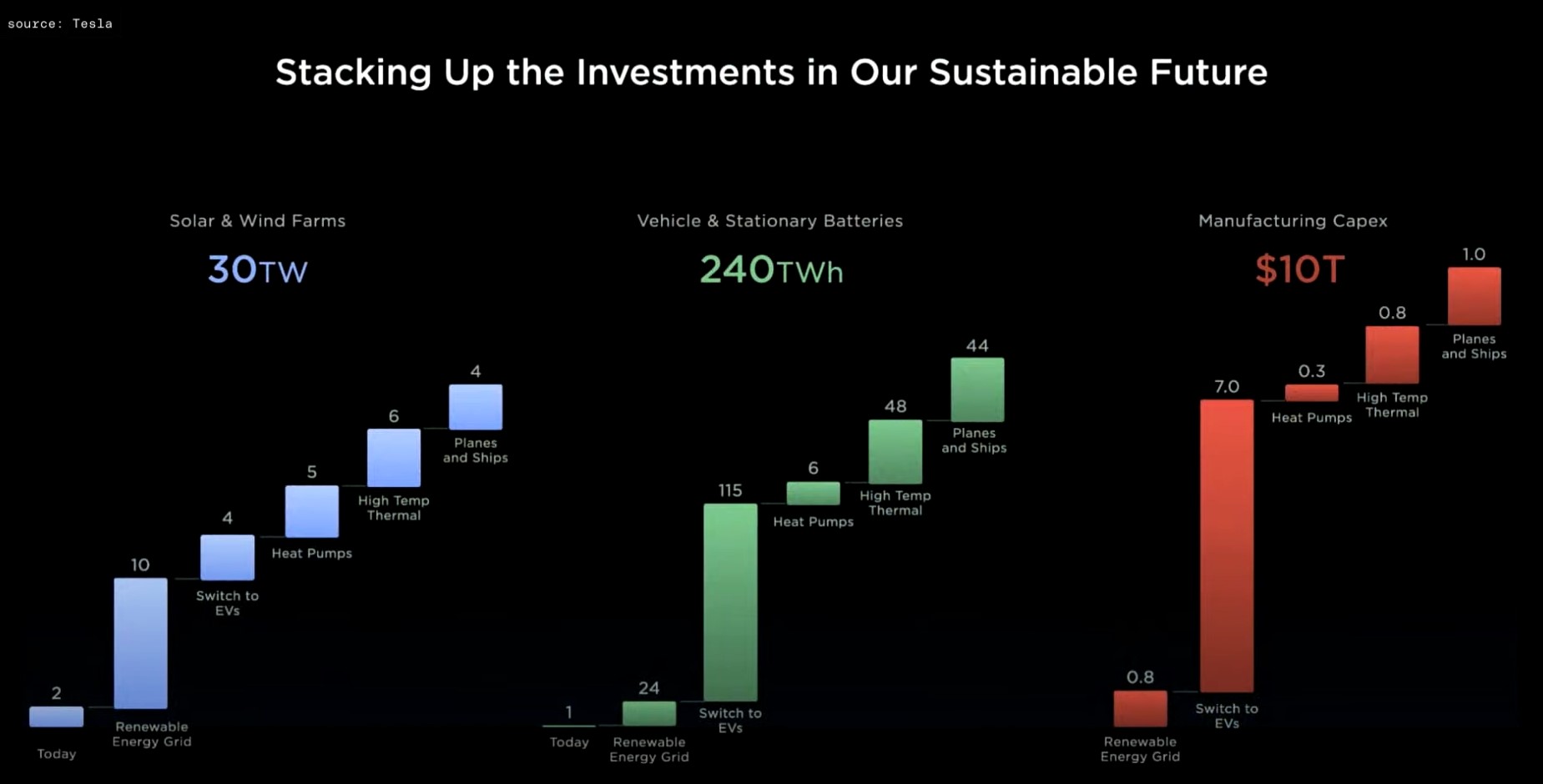 Według szacunków Tesli budowa takiej infrastruktury będzie relatywnie tania i relatywnie prosta. Ma ona sumarycznie kosztować ok. 10 tryllionów dol. w produkcji, a cały proces pochłonie „tylko” 10% równowartości światowego PKB za 2022 r.