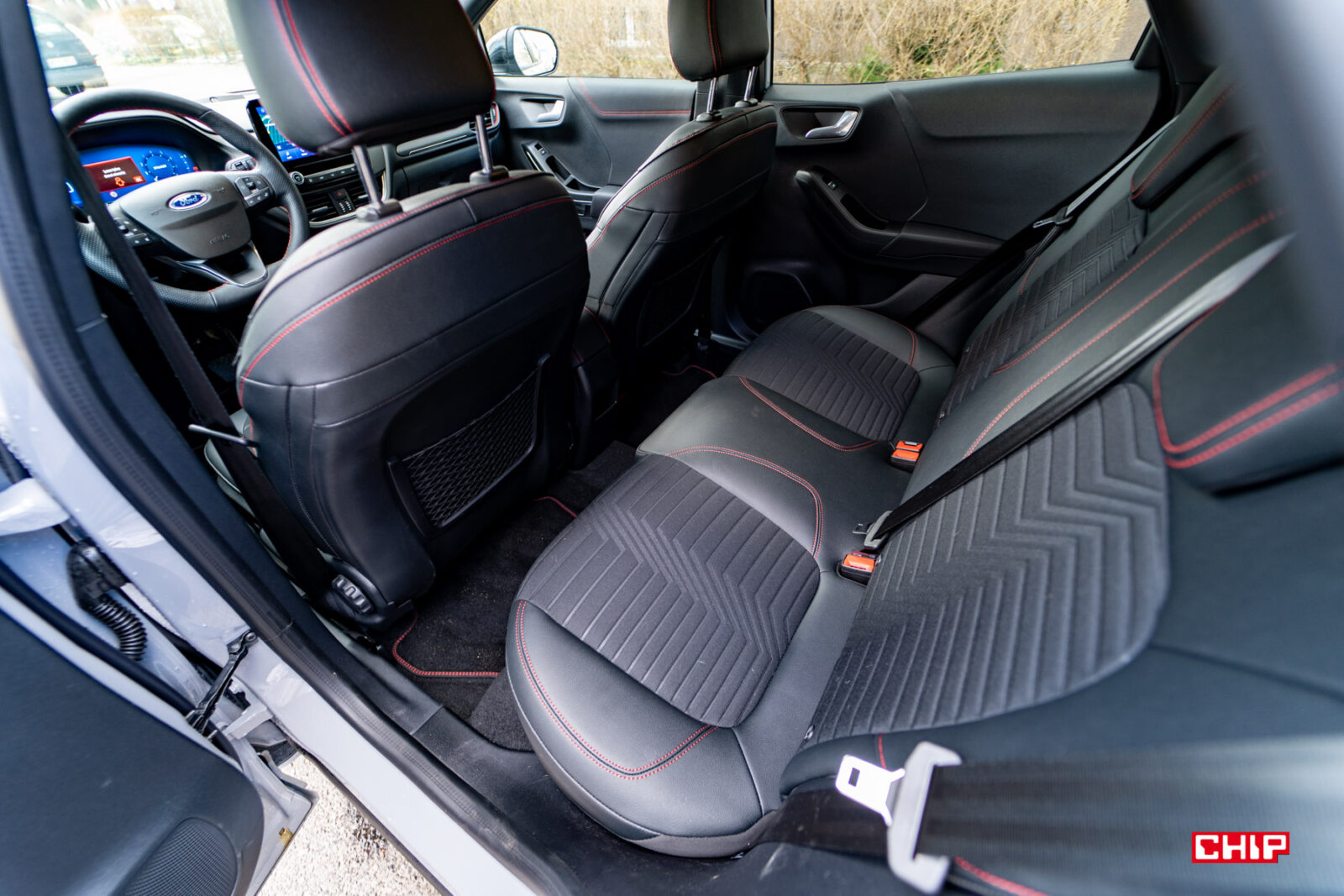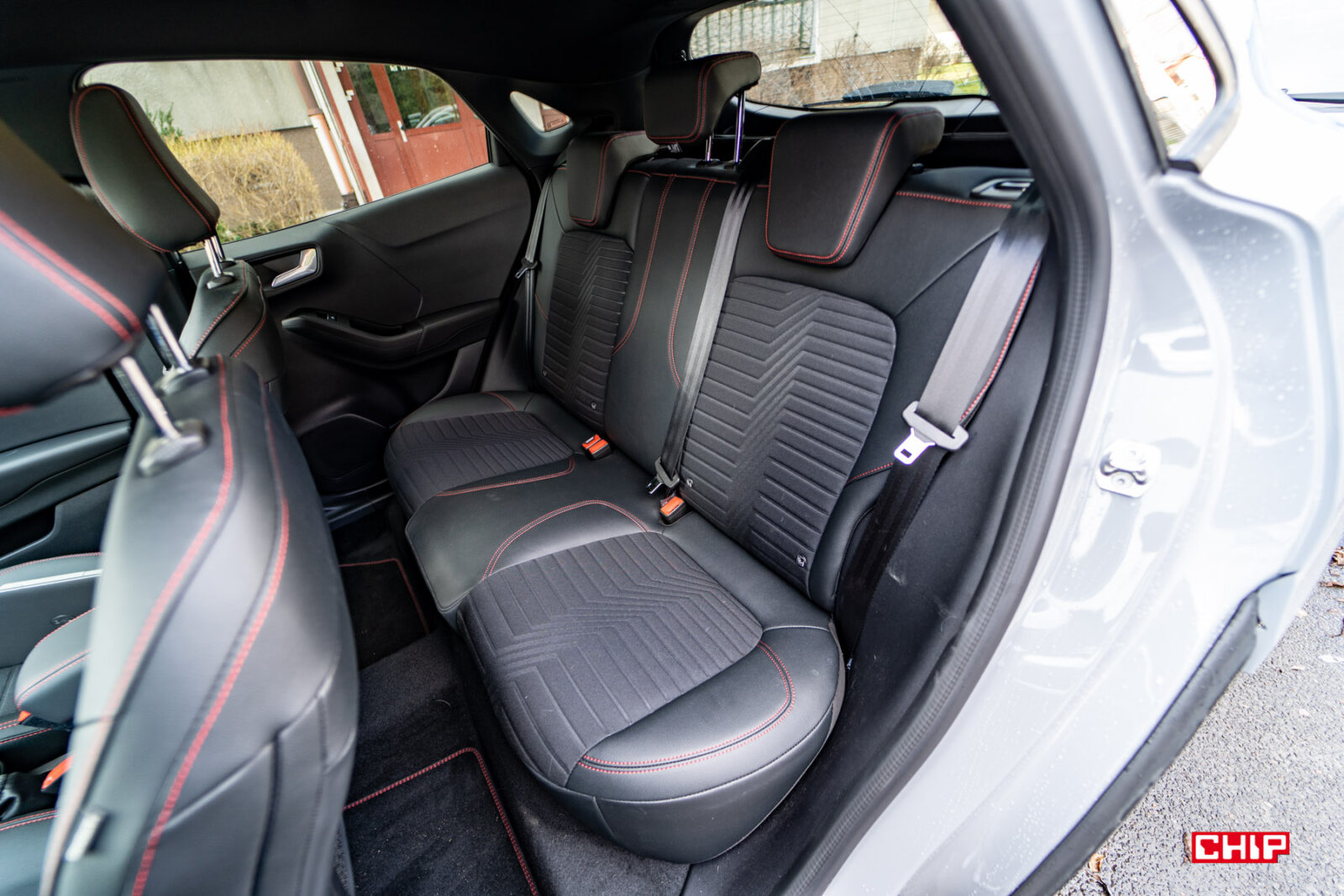 Ford Puma jest zbudowany na bazie Fiesty i rzut oka do wnętrza auta uświadamia nas, że faktycznie tak jest. Nie ma tu przestanie dużo miejsca, ale bez większych problemów mogą tu wygodnie podróżować cztery osoby, bez narzekania na brak przestrzeni na nogi, czy nad głową.