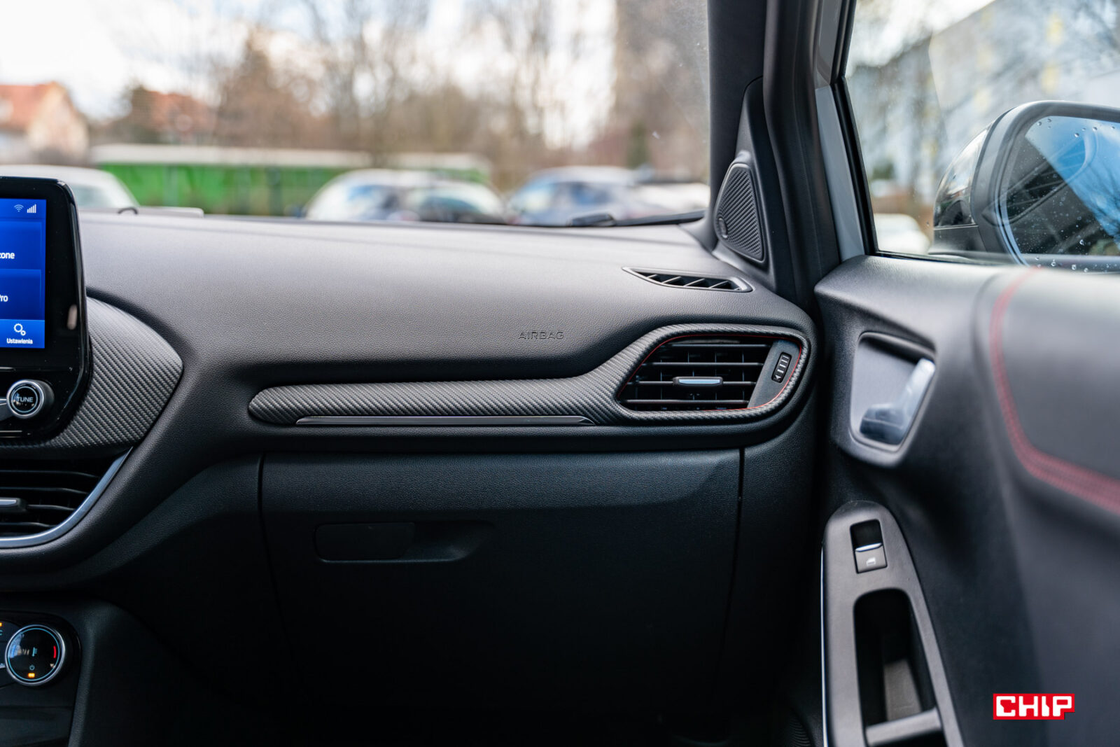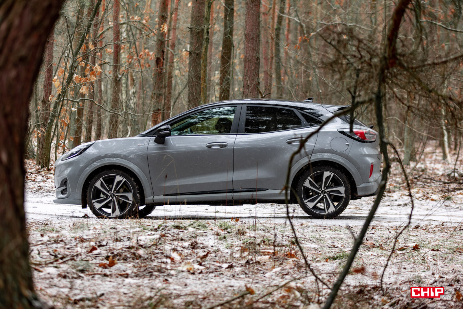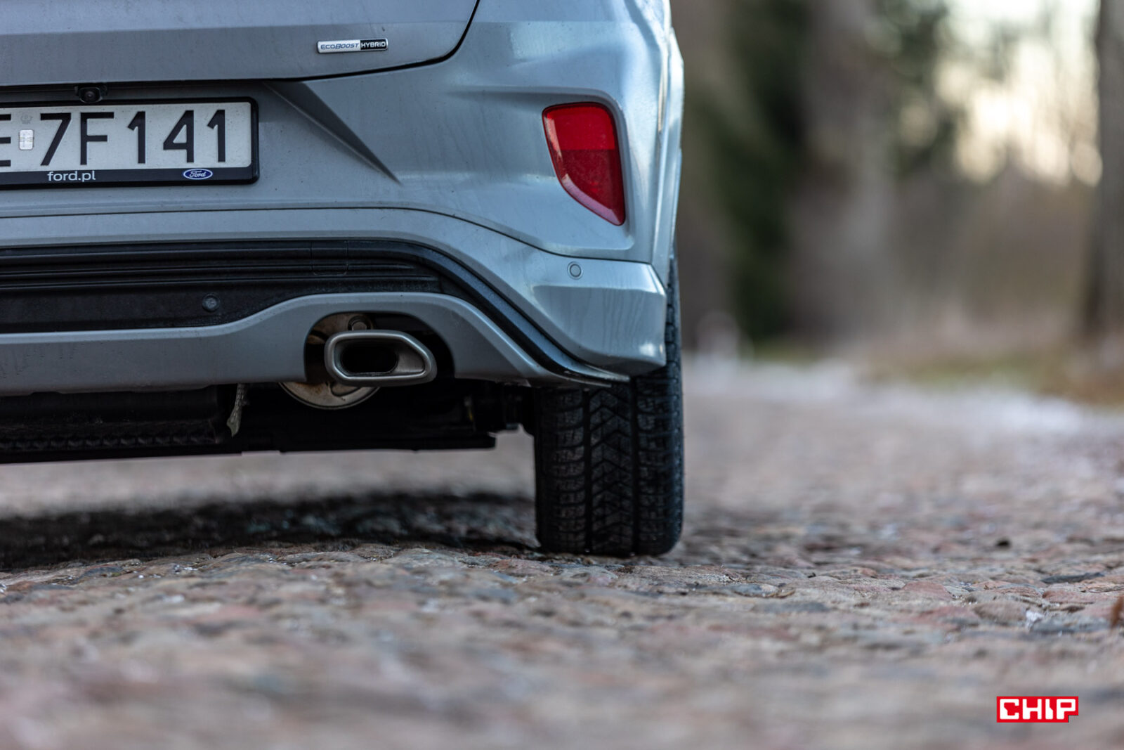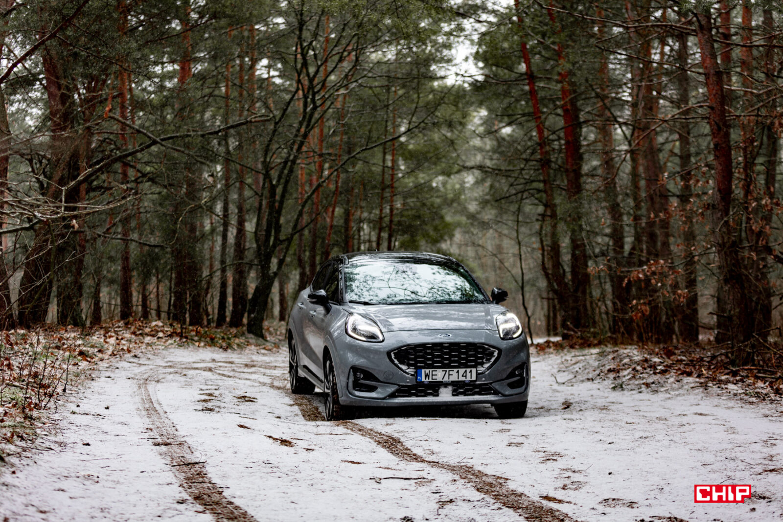 Co prawda dawno już żadnego auta nie testowaliśmy w tak parszywych warunkach pogodowych, ale też nie kojarzę innego modelu, który brudziłby się tak mocno jak Ford Puma. Mowa o trzech elementach – lampach, przedniej szybie i kamerze cofania. W przypadku lamp jest to pewnie kwestia ich umieszczenia i kształtu. Przednia szyba jest dosyć mocno nachylona i stosunkowo nieduża, więc wycieraczki nie są w stanie objąć większej powierzchni, a kamera cofania jest nad tablicą rejestracyjną. Inne samochody też się brudzą, ale przednia szyba i lampy Pumy dosłownie kilkadziesiąt kilometrów po wyjeździe z myjni wyglądały jak po przejeździe zabłoconą, polną drogą. To nie jest auto dla pedantów.