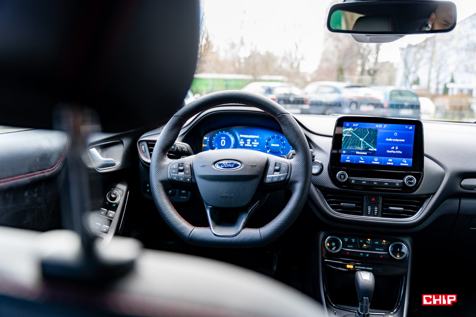 Zatrzymajmy się na chwilę przy tym ostatnim. Active Park Assist nie jest pełnym asystentem parkowania – kierowca ma tutaj pewne obowiązki. To do Was należy zmiana biegów i hamowanie. Po włączeniu asystenta (jest do tego dedykowany przycisk) należy włączyć również kierunkowskaz, aby dać autu znać, po której stronie ulicy ma szukać miejsca. Muszę mu to oddać – znajduje je sprawnie i ani razu nie pomylił się z wyborem sposobu parkowania (prostopadle/równolegle). Po potwierdzeniu, że chcecie, aby auto zaparkowało w wybranym miejscu, Wy zajmujecie się biegami (jazda do przodu/cofanie) oraz hamowaniem, a samochód weźmie na siebie część najtrudniejszą – kręcenie kierownicą tak, aby zmieścić się we wskazanym miejscu. Puma robiła to bardzo zgrabnie, w szczególności podczas parkowania równoległego, więc za to wielkie brawa. Jeżeli podchodzicie do samochodu i widzicie, że ktoś Was bezczelnie zastawił, również możecie liczyć na samochód. Wystarczy uruchomić asystenta i wybrać opcję wyjazdu z miejsca parkingowego. Zasada jest ta sama – samochód będzie kręcił kierownicą i jechał, a Wy musicie pilnować tego, aby zahamować w odpowiednim momencie. Będziecie wiedzieć kiedy zareagować, bo w standardzie macie przednie czujniki parkowania, a jeśli potrzebujecie ich również z tyłu, pakiet Driver Assistance 2 jest w nie wyposażony. Jeżeli do efektywnego parkowania wystarczy Wam kamera cofania – jest na wyposażeniu pakietu Driver Assistance.