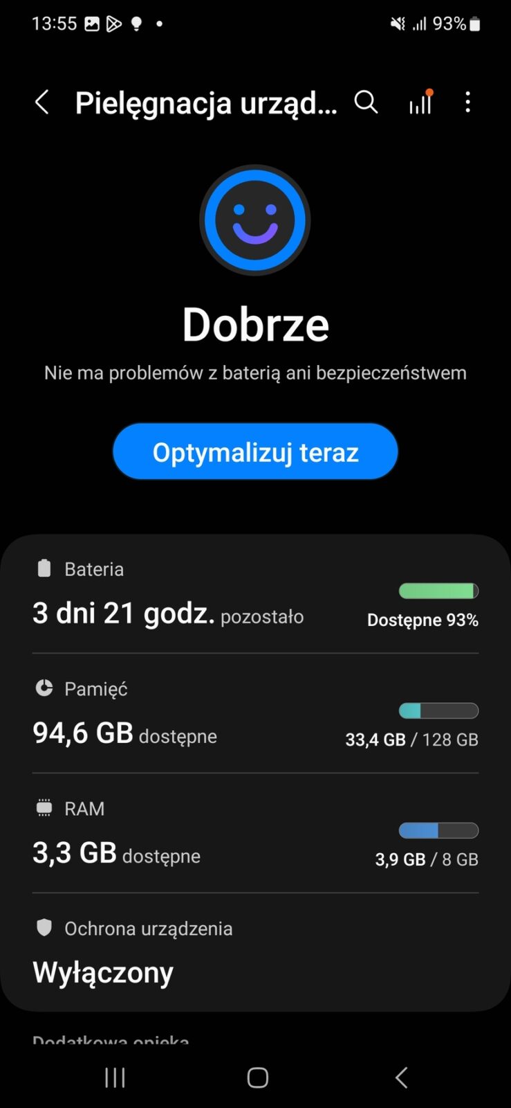 Ze 128 GB pamięci wewnętrznej (w testowym egzemplarzu), do dyspozycji użytkownika pozostaje ok. 99 GB. To o 2 GB mniej, niż deklaruje producent na swojej stronie, ale nie czepiam się zbytnio, bo można ją rozbudować nawet o dodatkowy 1 TB przy pomocy kart microSD. A to coraz rzadziej dostępna opcja w nowych telefonach.