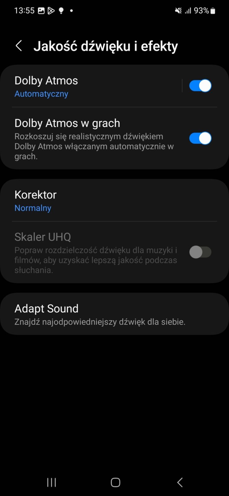 Po podłączeniu słuchawek jest już znacznie lepiej, chociaż oczywiście możemy to zrobić tylko za pośrednictwem Bluetooth lub portu USB-C. Samsung Galaxy A54 5G nie posiada bowiem gniazda słuchawkowego miniJack. Poza systemem Dolby Atmos w ustawieniach znajdziemy również manualny equalizer i system Adapt Sound, który ma za zadanie dostosować barwę dźwięku do konkretnej grupy wiekowej.