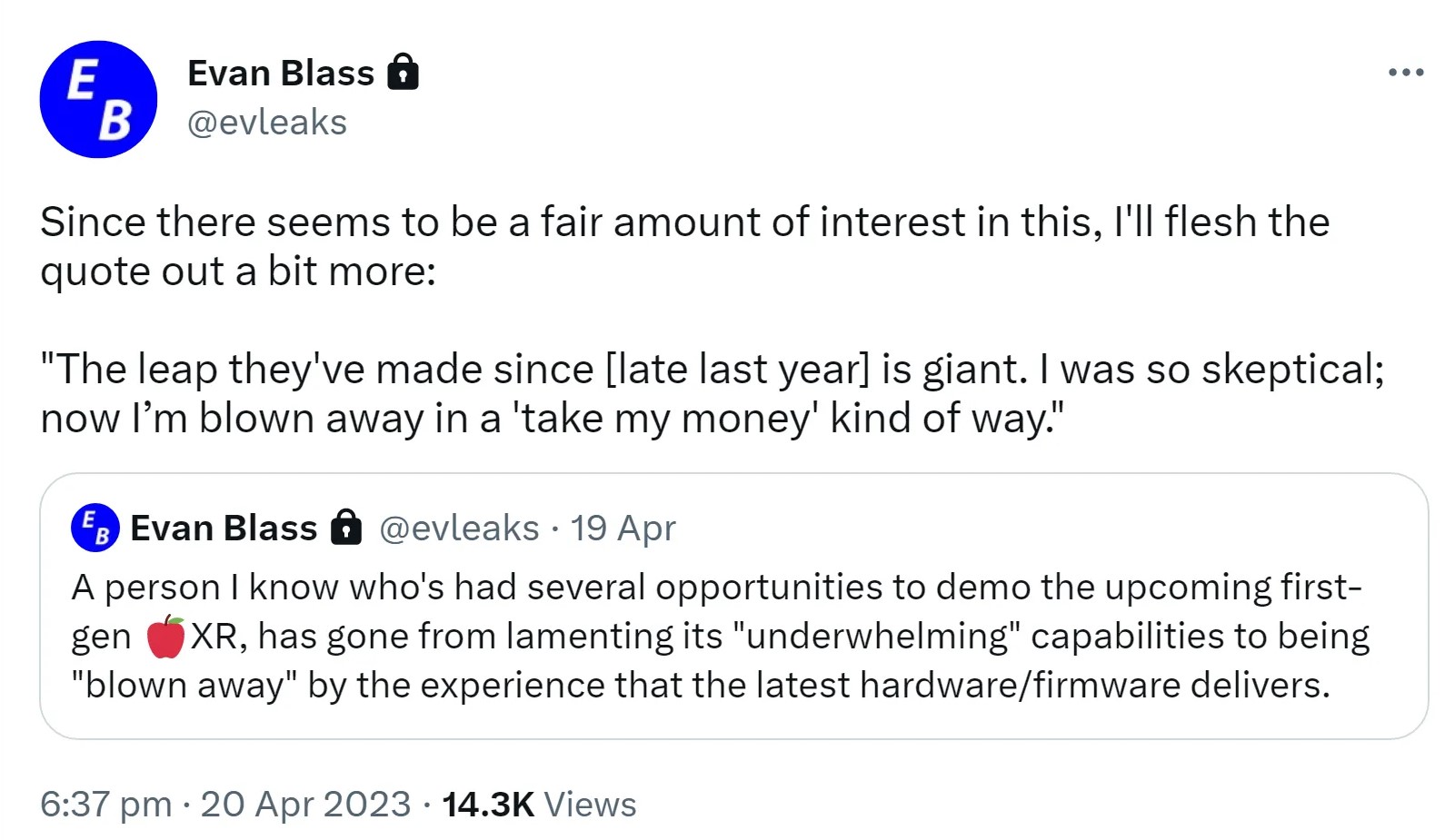 Tymczasem najnowsze plotki w końcu stawiają zestaw Apple’a do mieszanej rzeczywistości w jasnym świetle. Jak bowiem donosi Evan Blass, znaczące ulepszenia, jakie gigant z Cupertino wprowadził w swoim zestawie, przekształciły go z rozczarowującego sprzętu w urządzenie, które jest warte wydanych pieniędzy. Blass powołał się na jednego ze znajomych testerów, ten ponoć wyraził się o zestawie w tych słowach: