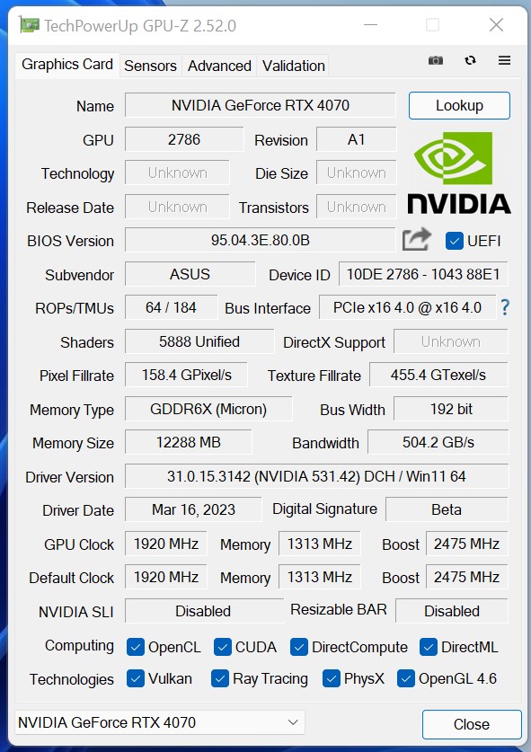 - RTX 4070: Nvidia Game Ready 531.42