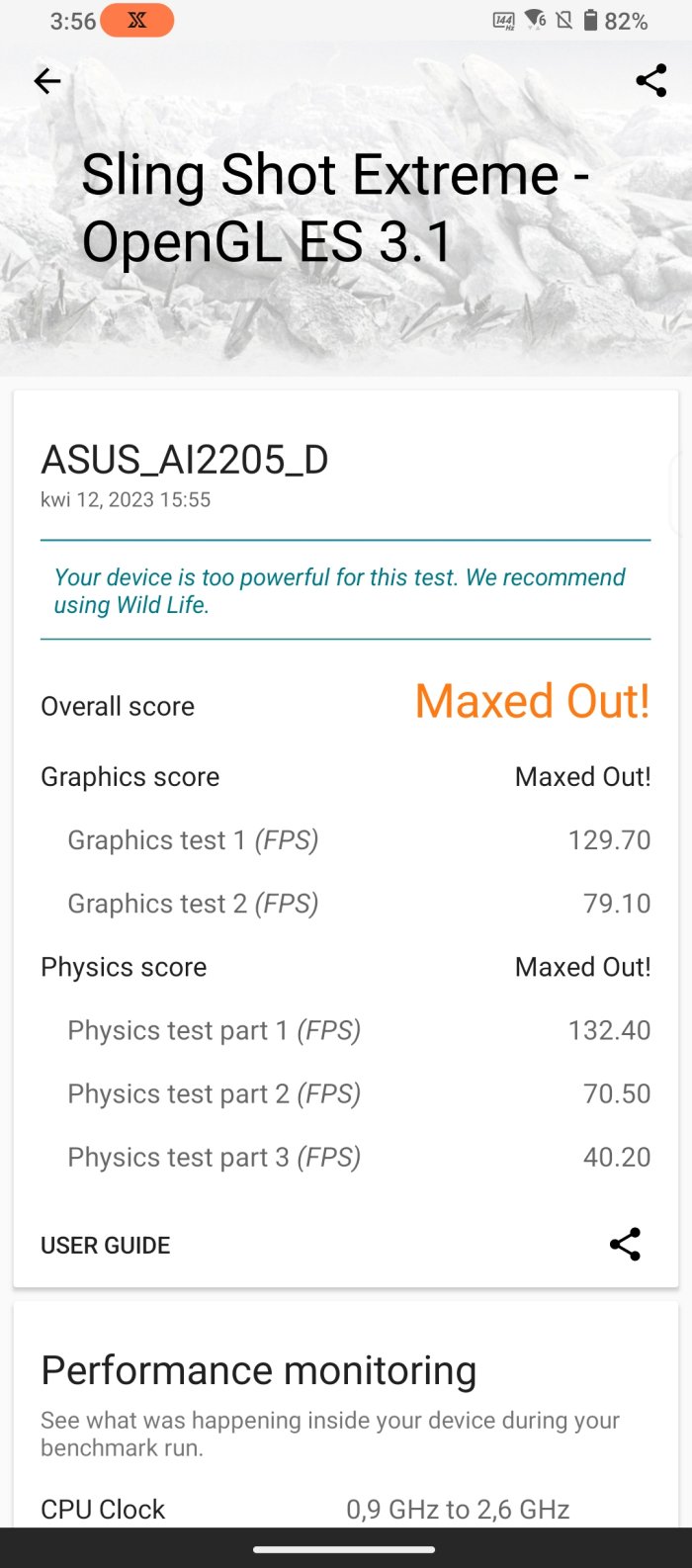 Jak łatwo zauważyć, powyższe wyniki wcale nie są jakieś porażająco wyższe (momentami są wręcz niższe!) niż konkurencja od Samsunga czy Apple’a. Różnica między takim S23 Ultra czy iPhone’em 14 Pro Max polega jednak na tym, iż Asus nie traci ani ułamka wydajności pod maksymalnym obciążeniem, a też jako smartfon gamingowy oferuje szereg udogodnień dla graczy, których nie znajdziemy nigdzie indziej.