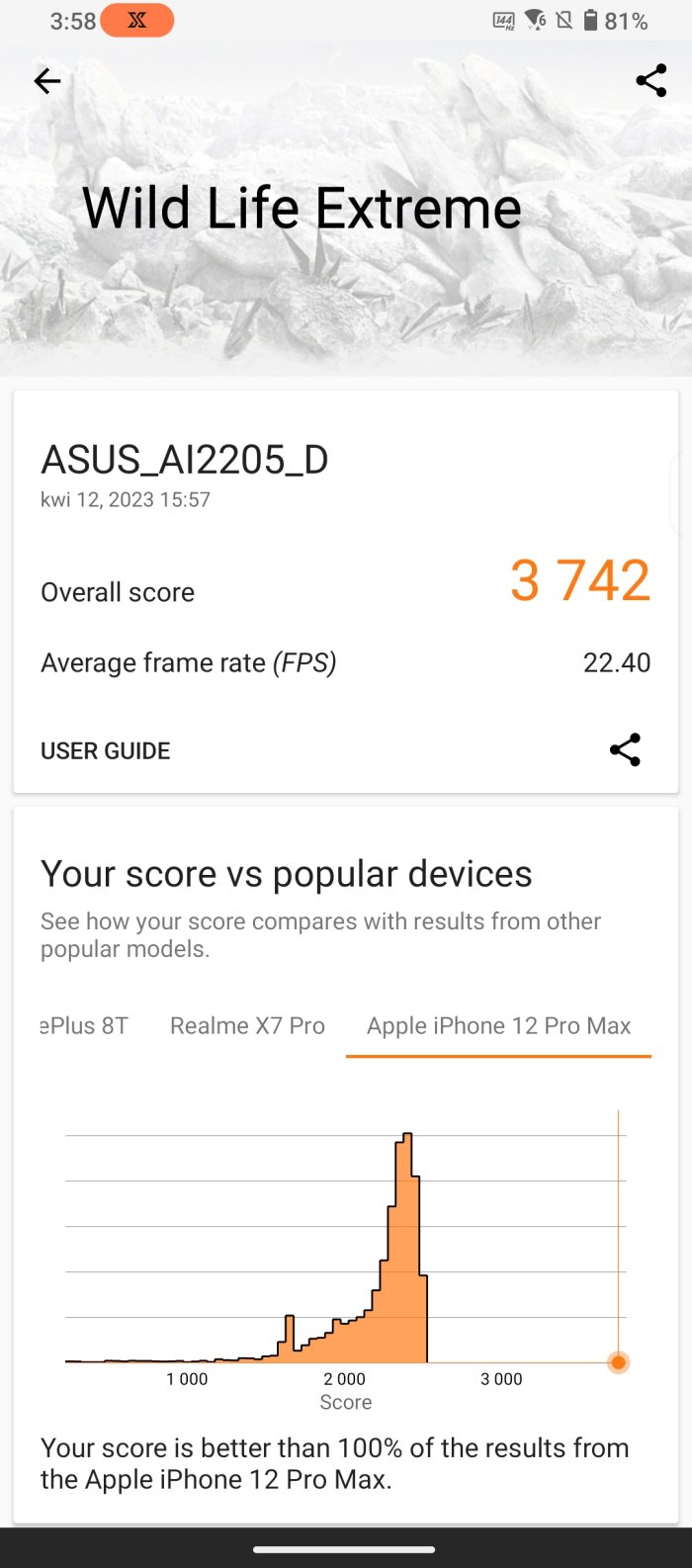 - 3D Mark Wildlife Extreme: 3742 pkt.