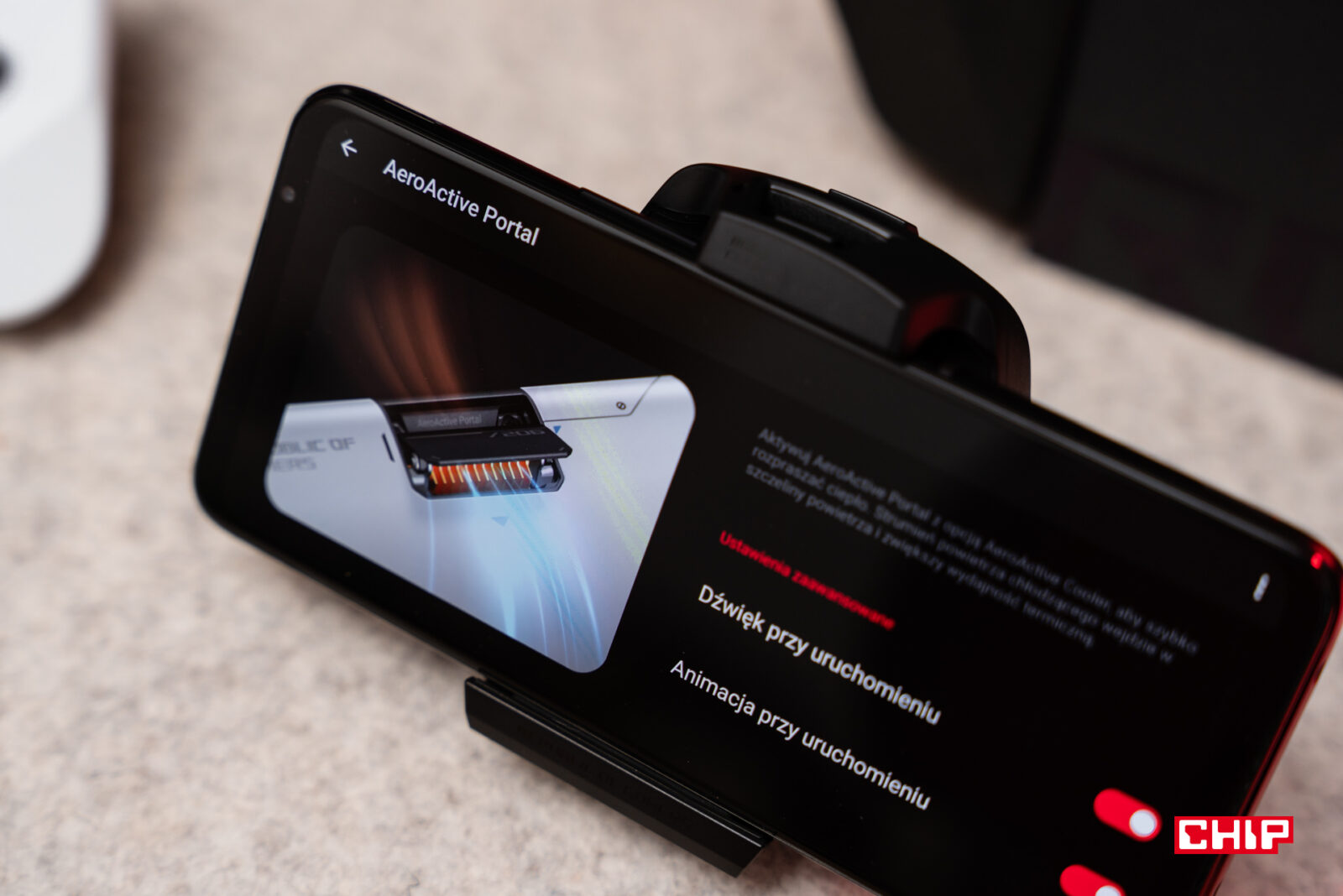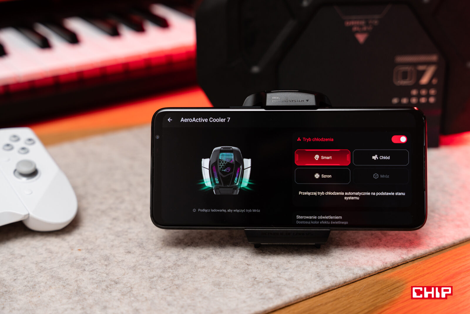 To dobry moment, by pomówić o opcjonalnym, kosztującym 549 zł dodatku, który w wersji Ultimate znajdziemy w zestawie. Chłodzenie AeroActive Cooler 7 wprowadza kilka ciekawych udogodnień – przede wszystkim chłodzi smartfona, ale też oferuje dodatkowe podświetlenie (które oczywiście możemy customizować wedle woli), a do tego może służyć jako wbudowana podstawka, jeśli zechcemy oprzeć telefon i korzystać z niego w parze z kontrolerem bezprzewodowym. Ma on też wbudowane dodatkowe przyciski, które mogą się przydać w czasie grania. Jeśli jednak chodzi o jego główny cel, to jest on dość… zbędny.