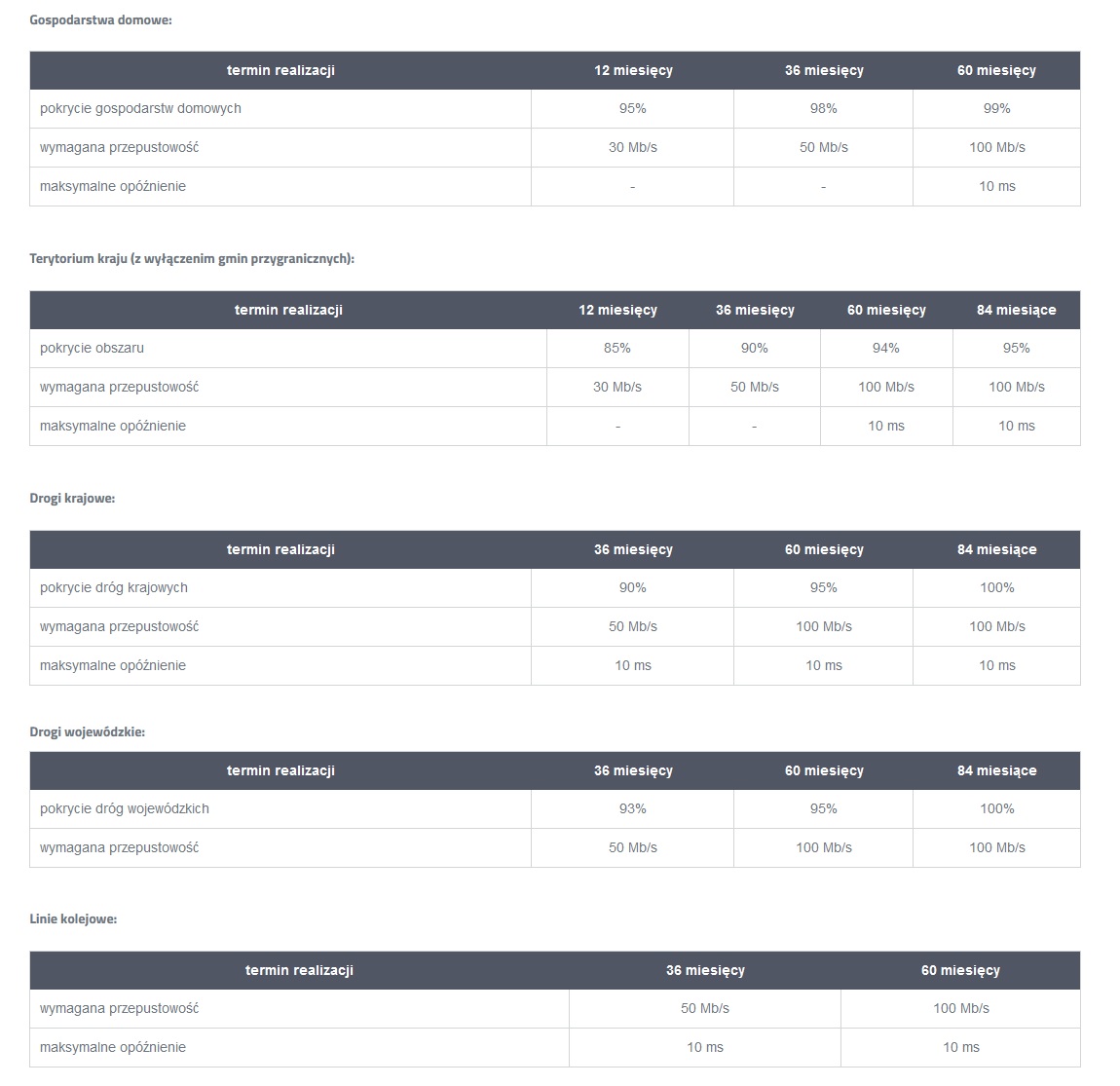 Pojawiły się też mniejsze lub większe zmiany w zobowiązaniach pokryciowych. UKE nazywa to kosmetyką i przede wszystkim wskazane zostały priorytety dla operatorów. Najważniejsze będą gospodarstwa domowe. Nowe wymagania wyglądają następująco: