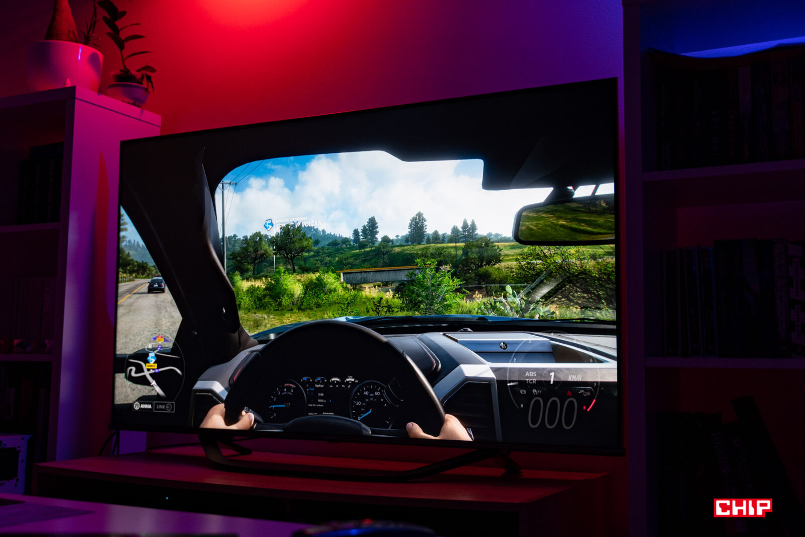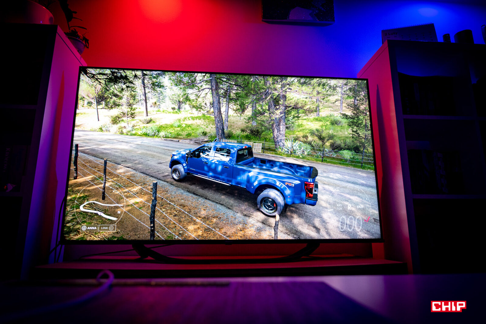 Zacznijmy od gier. Domyślnie aktywny jest tryb automatycznego dobierania parametrów obraz do aktualnie wyświetlanych treści i w tym przypadku jest mały zgrzyt. Podczas grania w gry telewizor lub podbić ostrość obrazu, co w przypadku wielu tytułów nie wygląda zbyt korzystnie. Co ciekawe, suwak ostrości w Ustawieniach nie pozostaje na swoim miejscu. Wystarczy wtedy wejść w Ustawienia, przesunąć go lewo-prawo, co w pewnym sensie odświeża obraz i ostrość wraca do ustawionego wcześniej poziomu i już na nim zostaje. Działo się tak w zasadzie co któreś uruchomienie telewizora.