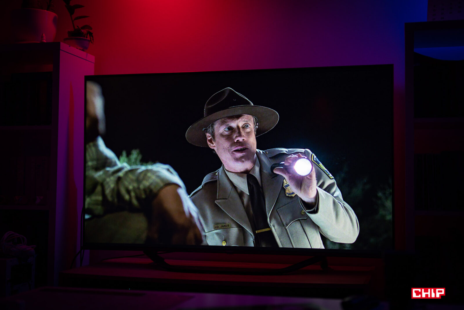 Efekt HDR, jak i kontrast obrazu są na dobrym poziomie. Nie są to wysokie wartości, ale wystarczające do tego, aby poczuć różnicę z aktywnym HDR-em i bez niego. Dobrze wypada też jasność i jestem pozytywnie zaskoczony niwelowaniem odblasków. Telewizor mam ustawiony przodem do okna po stronie zachodniej i spodziewałem się, że popołudniami będzie nieużywalny. O ile nie planujecie oglądać na nim słynnego niewidocznego odcinka Gry o Tron, nawet w słoneczne dni obraz będzie bardzo przyzwoity. Kąty widzenia nie są może rekordowe, ale nie musicie się obawiać, siedząc lekko po skosie w stosunku ekranu nie stracicie na jakości kadru. Wyraźne spadki jakości pojawiają się w okolicach kąta 130-140 stopni.