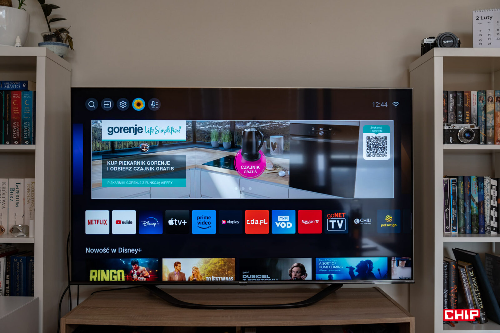 Pośród dostępnych aplikacji mamy dostęp do prawie wszystkich popularnych serwisów VOD. Jest Netflix, Amazon Prime, Disney+, goNET TV, jest też VOD TVP i Polsat Go. Nie ma za to serwisów TVN-u – Playera i TVN24Go oraz HBO Max i Canal+. Z mojej perspektywy jest to bardzo duża wada, ale pewnie nie zabraknie osób, które kompletnie nie zwrócą na to uwagi. Warto jednak mieć to na uwadze, bo nie wykluczone, że do zakupu trzeba będzie dodać jakąś przystawkę TV z Androidem, która da nam dostęp do ulubionych serwisów.