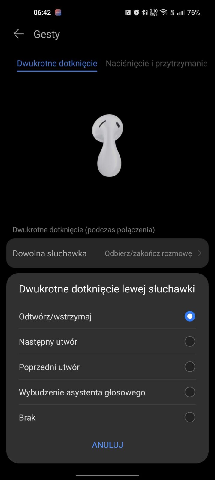 Chodzenie, mówienie, ruszanie głową i ziewanie tylko potęgowało to wypadanie, przez co z FreeBuds 5 w uszach żyłem w ciągłym strachu, czy aby za moment jedna słuchawka nie wypadnie mi prosto do kubka z kawą lub na ulicę pod koła samochodu. Jako osoba potrafiąca ruszać małżowinami, złapałem się nawet na tym, że napinałem mięśnie wokół uszu tylko po to, aby utrzymać słuchawki w dobrej pozycji. Z początku nie było to problemem, ale po kilkudziesięciu minutach powodowało to dodatkowy dyskomfort.