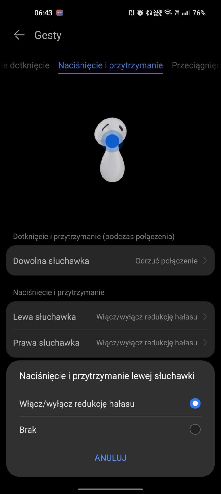 Co więc z tego, że FreeBuds 5 ładnie wyglądają, że brzmią bardzo dobrze, a nawet że ANC działa wzorowo (Hear-Through tutaj nie uświadczycie), jak trwa to ledwie kilka minut po włożeniu słuchawek do uszu, bo te zaczynają się zwyczajnie wysuwać? Nie byłem w tym jednocześnie jakimś rodzynkiem z “popsutymi uszami”. W ramach testu wkręciłem partnerkę, że FreeBuds 5 trzymają się uszu najlepiej ze wszystkich słuchawek niedokanałowych, z jakimi miałem do czynienia, a jej pełen zwątpienia wzrok po kilku minutach potwierdził mi jednoznacznie pierwotne założenia – Huawei po prostu zaprojektował te słuchawki albo źle, albo dla wąskiej grupy odbiorców.