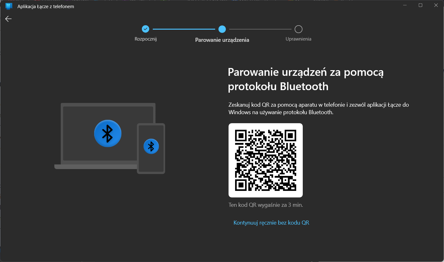 Parowanie peceta z iPhone’em w aplikacji najwygodniej odbywa się za pomocą kodu QR, który należy zeskanować aparatem telefonu. Na urządzeniu mobilnym warto wcześniej zainstalować aplikację Łącze do Windows (Link to Windows), która dostępna jest za darmo w sklepie App Store. Konieczne będzie również włączenie łączności Bluetooth na obu urządzeniach i podłączenie ich do tej samej sieci bezprzewodowej. Parowanie odbywa się co prawda przez Bluetooth, ale już synchronizacja danych idzie przez Wi-Fi. Na koniec zostawiamy sobie zgodę na powiadomienia i dostęp, które trzeba ustawić z poziomu telefonu.