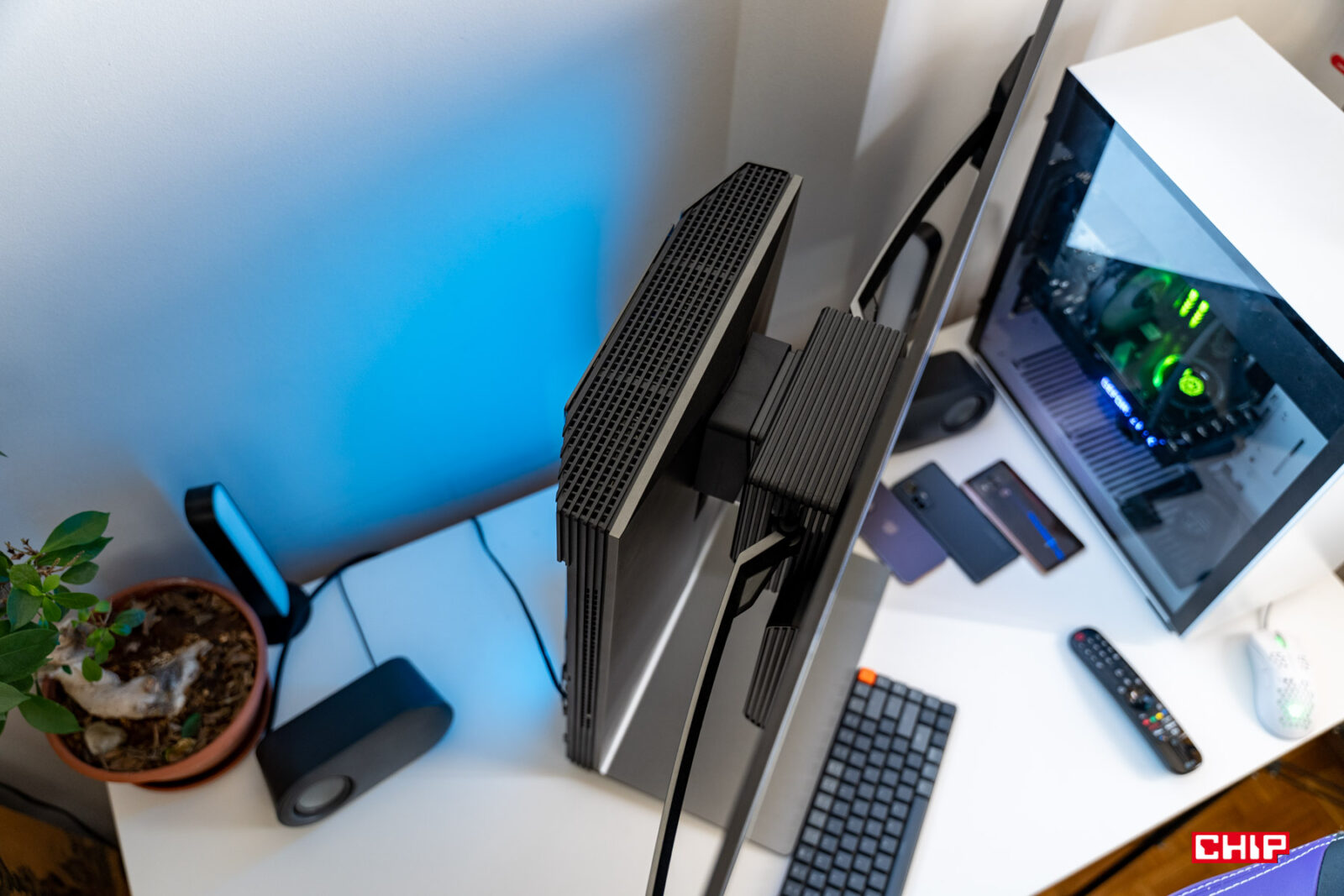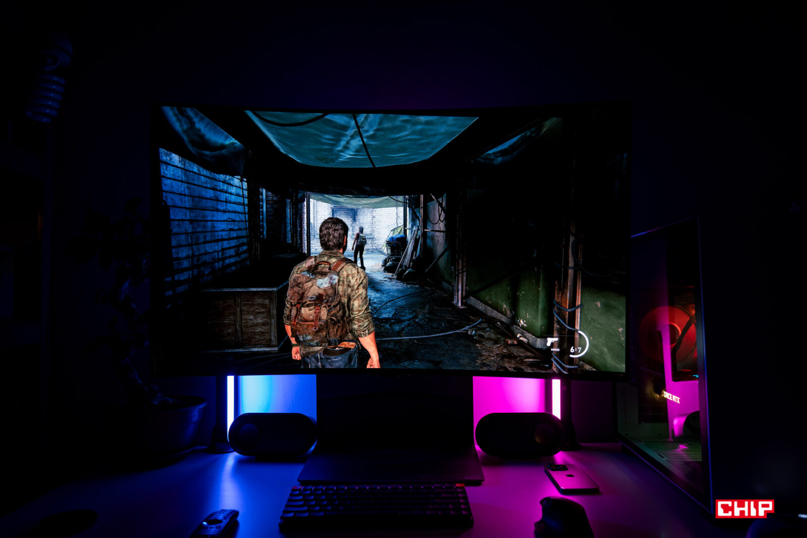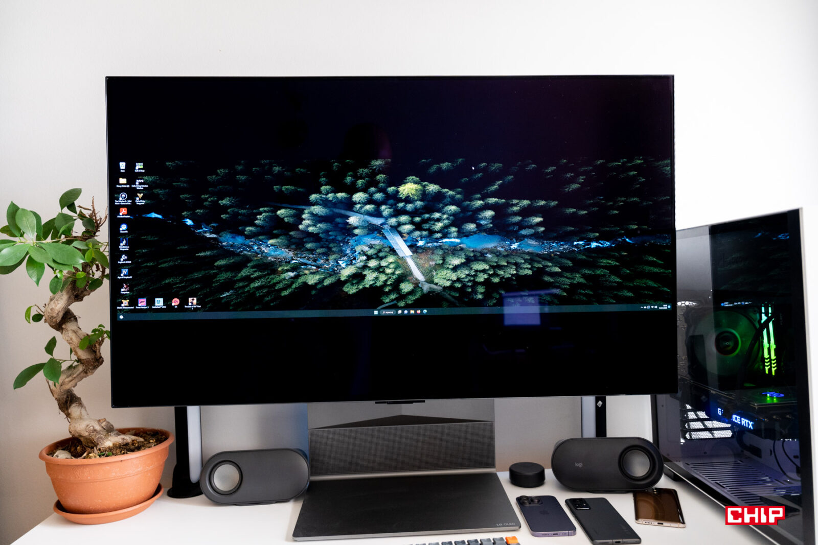 Korzystanie z tak dużego ekranu wbrew pozorom potrafi być wygodne. Szczególnie dzięki możliwości dopasowywania rozmiarów wyświetlanego obrazu, dzięki czemu podczas pracy można skorzystać z bardziej panoramicznych proporcji. Do tego mamy szeroki zakres możliwości regulacji położenia ekranu i bardzo szybko można nie tylko się do niego przyzwyczaić, ale też zwyczajnie polubić. Wtedy sprawdza się nie tylko w grach i filmach, a przy tym jest naprawdę wybitny, ale też można na nim bardzo komfortowo pracować. A w tym wszystkim nie będą nam przeszkadzać wbudowane głośniki, które oferują bardzo przyzwoitą jakość dźwięku.