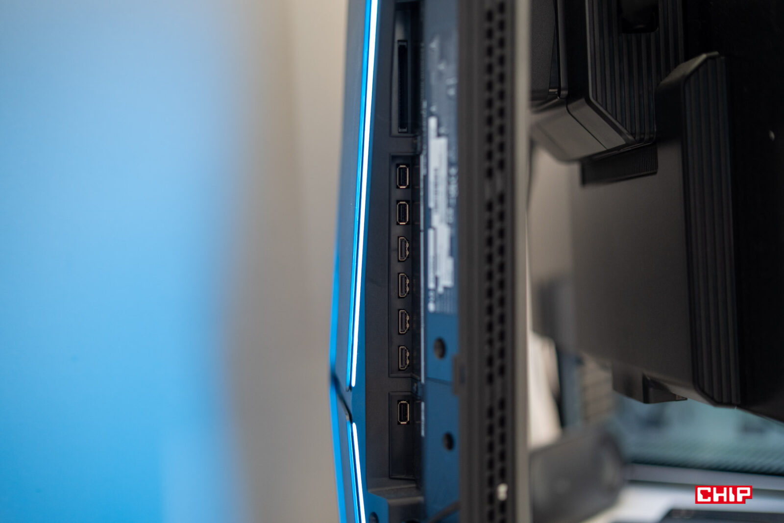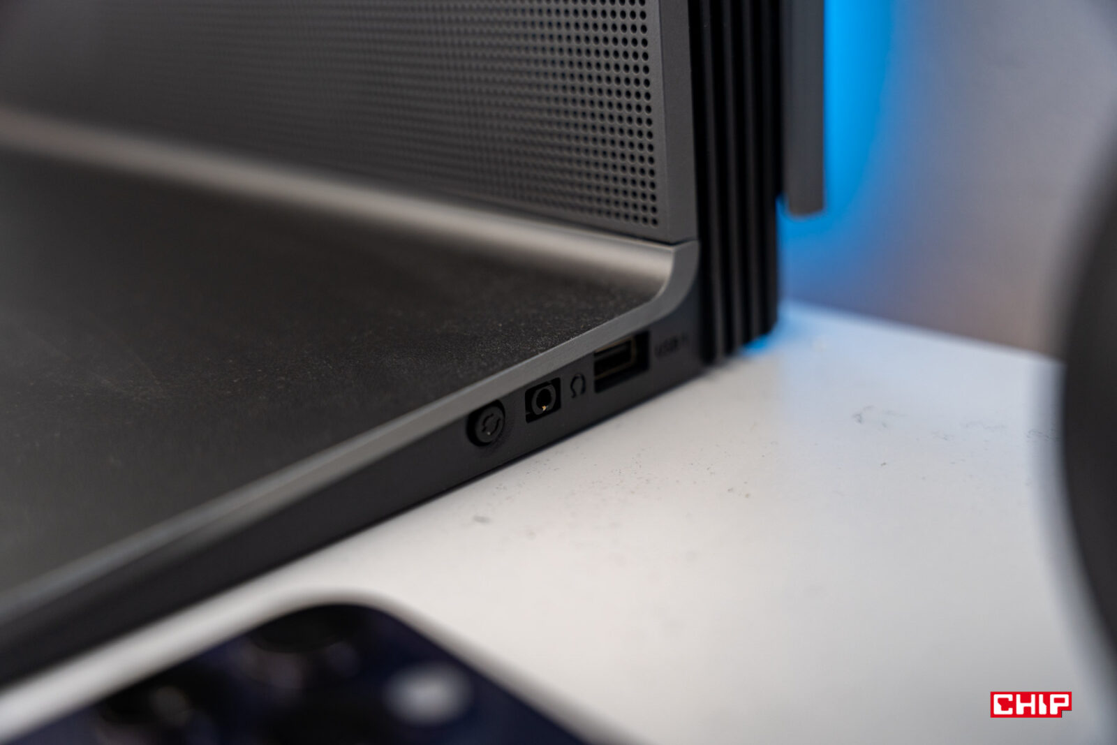 Kolejne znajdują się na lewym, pionowym boku podstawy. Tutaj mamy cztery porty HDMI 2.1 (jeden eARC), trzy porty USB 3.1 oraz miejsce na kartę telewizyjną. Tym, czego zdecydowanie brakuje w ekranie dla graczy jest brak DisplayPortu oraz USB-C. Przynajmniej jedno z tych gniazd powinno się tu pojawić.