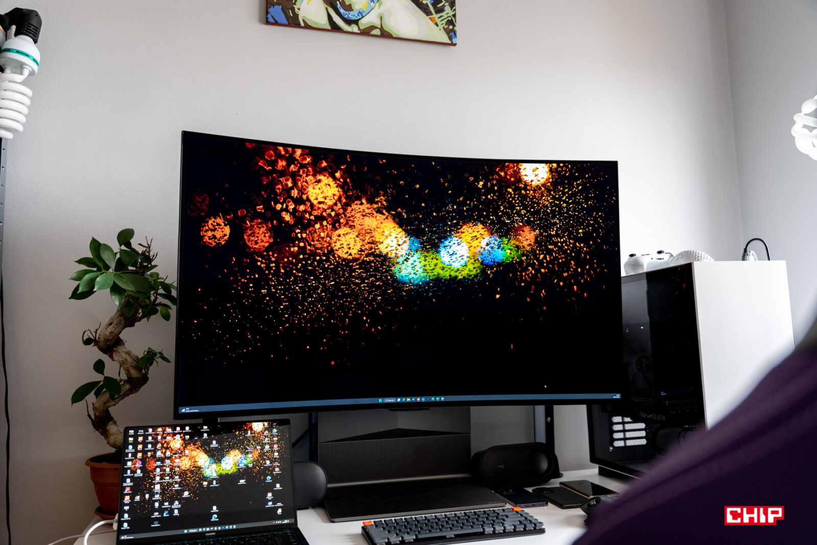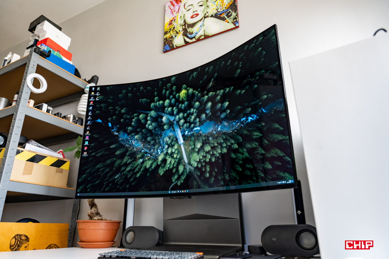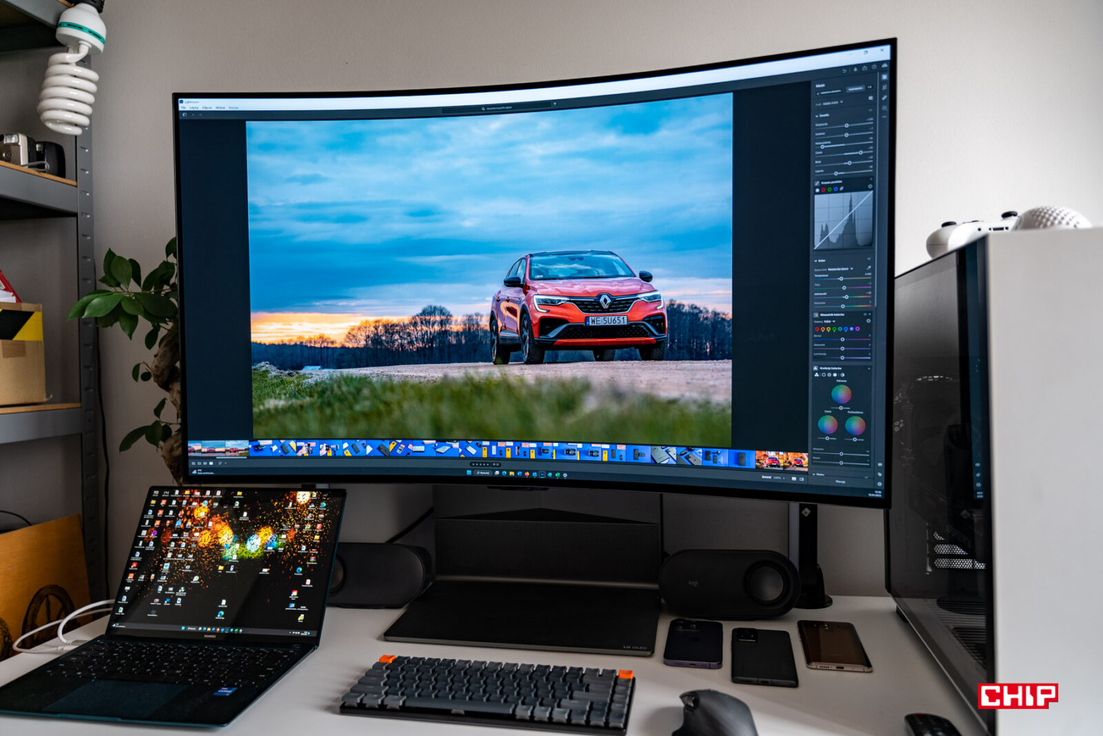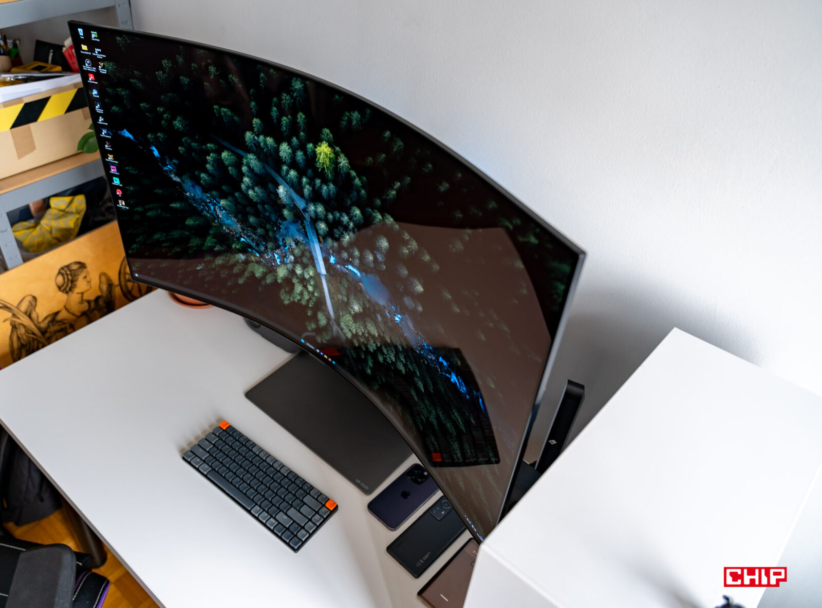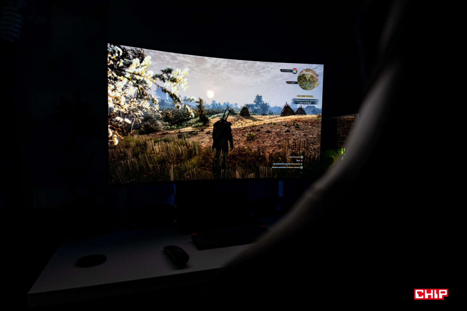 Korzystanie z płaskiego ekranu o takiej przekątnej i takich proporcjach (16:9) jest wybitnie niewygodne. Przerabiałem to niedawno z 42-calowym Asusem ROG Swift OLED. Taka przekątna jest zdecydowanie zbyt duża, trudna do ogarnięcia wzrokiem i w codziennej pracy to naprawdę katorga.
